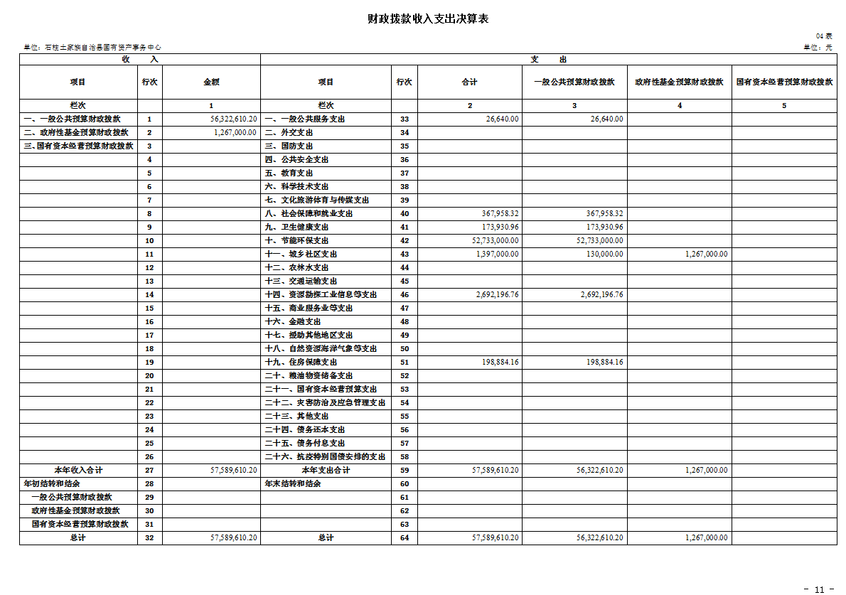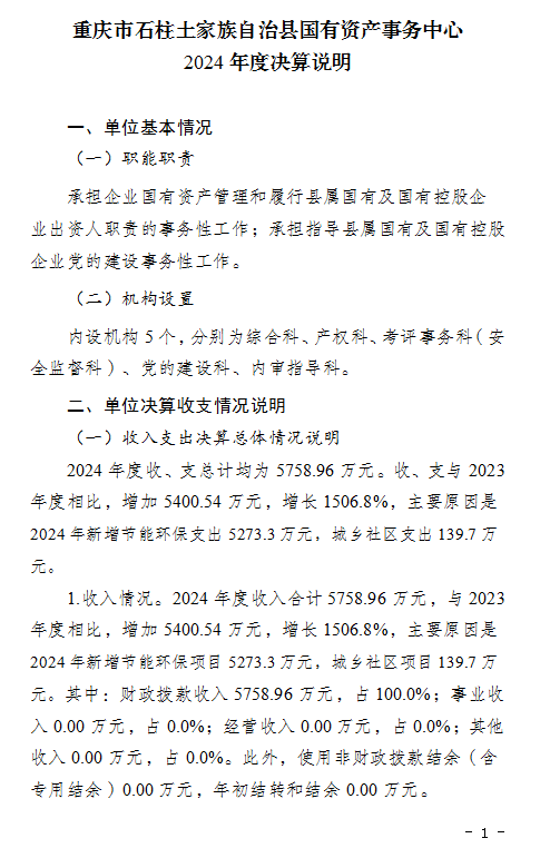石柱土家族自治县国有资产事务中心2024年度部门决算报告及报表