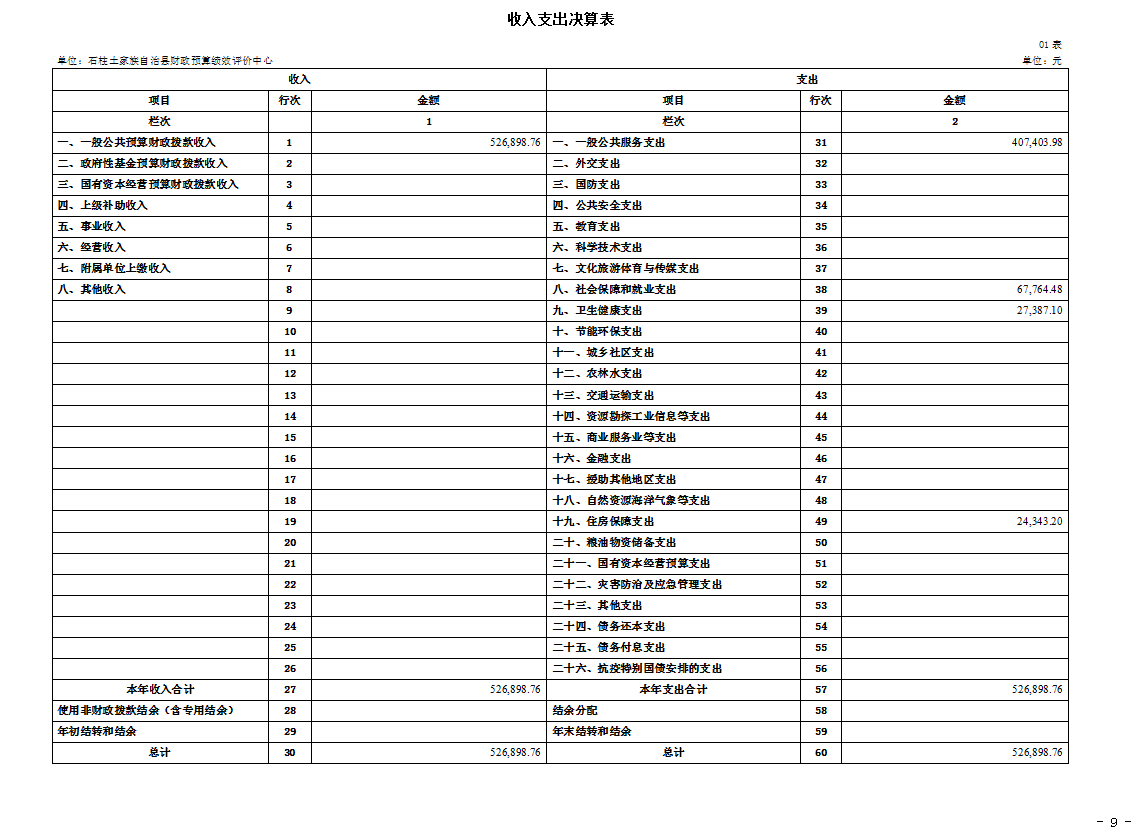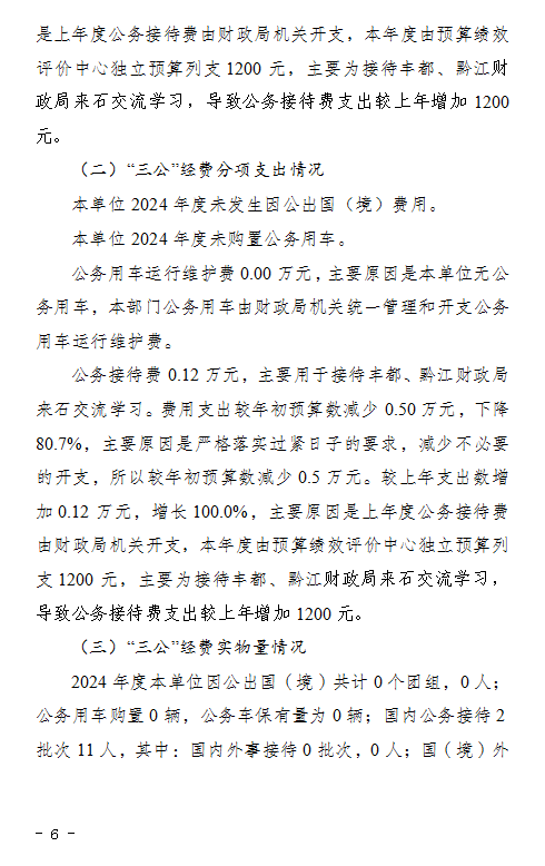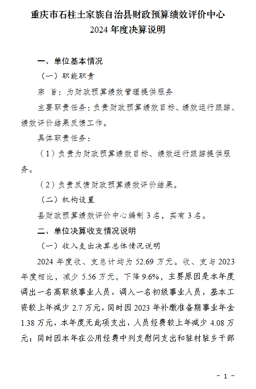 石柱土家族自治县财政预算绩效评价中心2024年度部门决算报告及报表