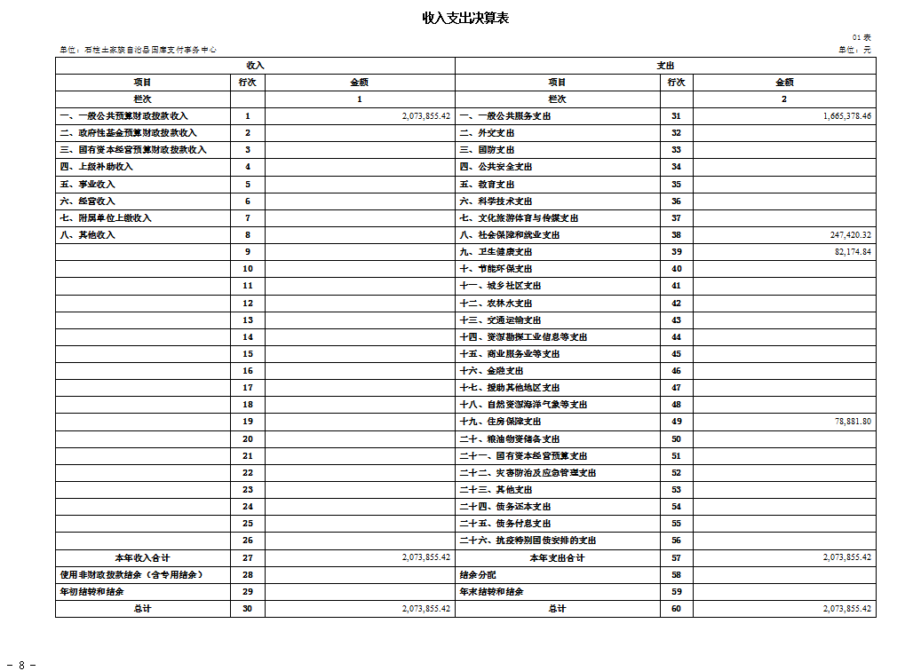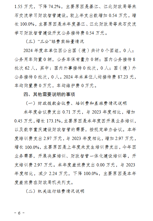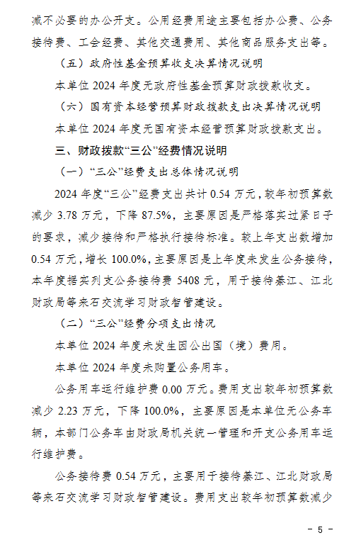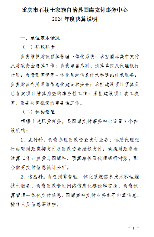 石柱土家族自治县国库支付事务中心2024年度部门决算报告及报表