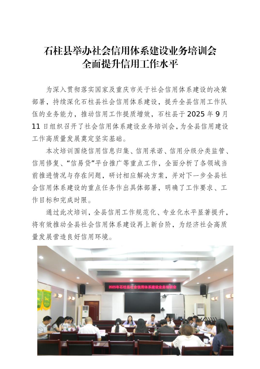 石柱县举办社会信用体系建设业务培训会 全面提升信用工作水平