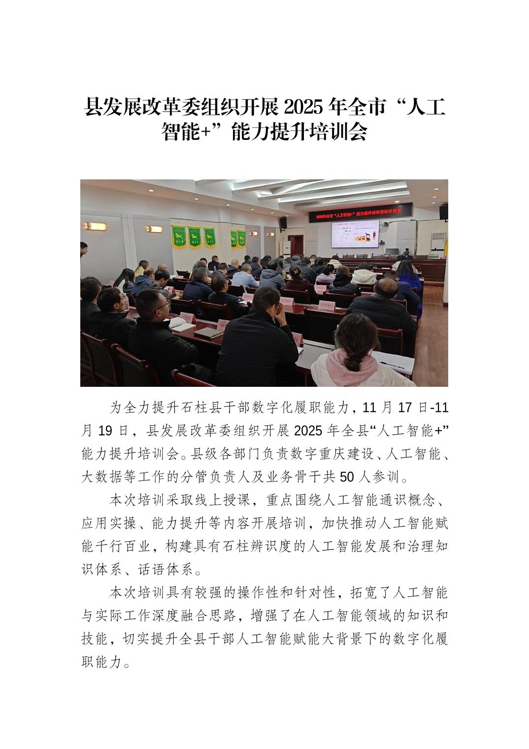 县发展改革委组织开展2025年全市“人工智能+”能力提升培训会