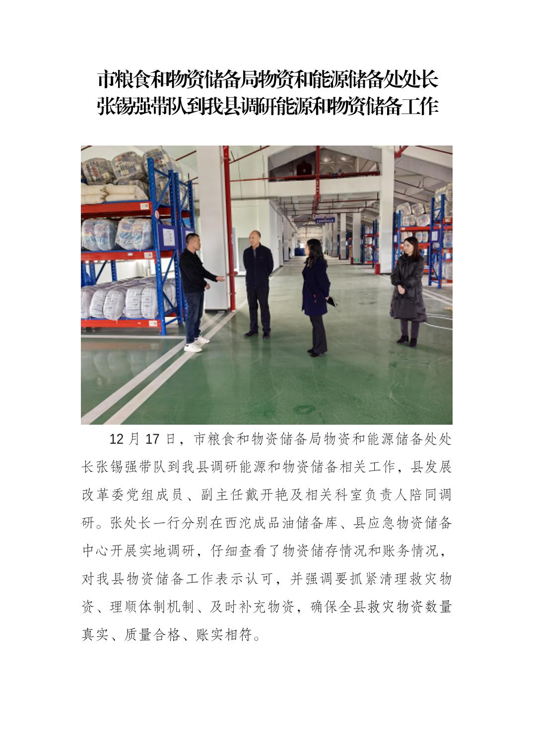 市粮食和物资储备局物资和能源储备处处长张锡强带队到我县调研能源和物资储备相关工作