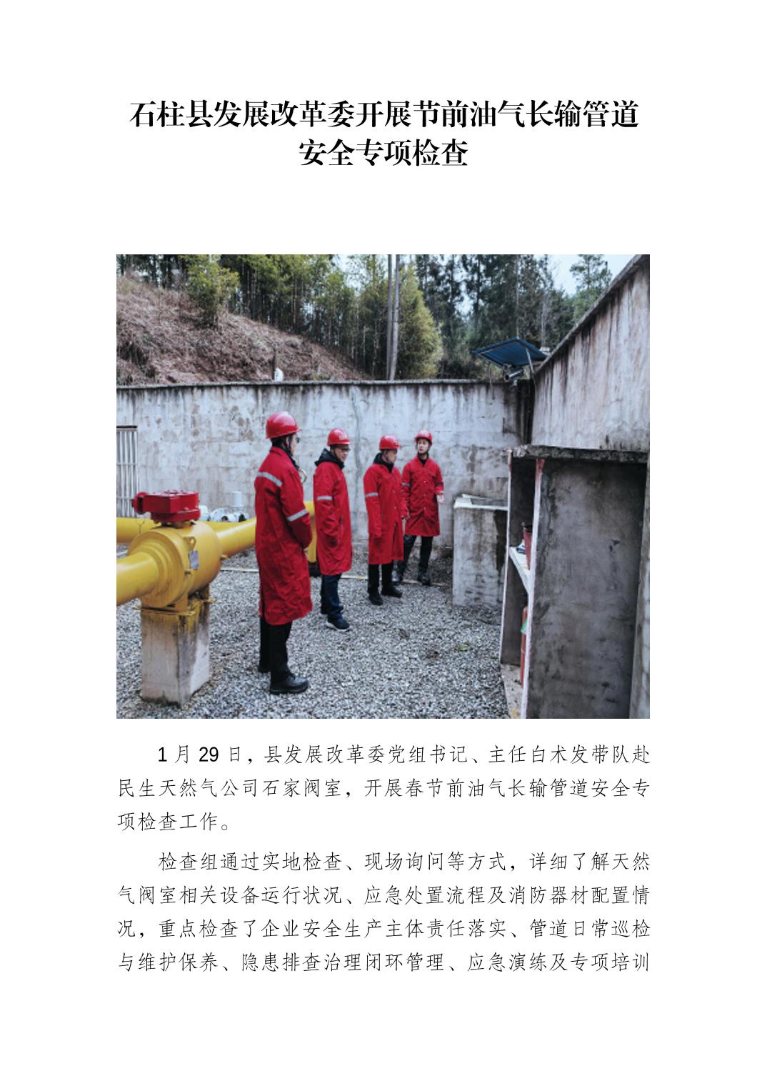 石柱县发展改革委开展节前油气长输管道安全专项检查