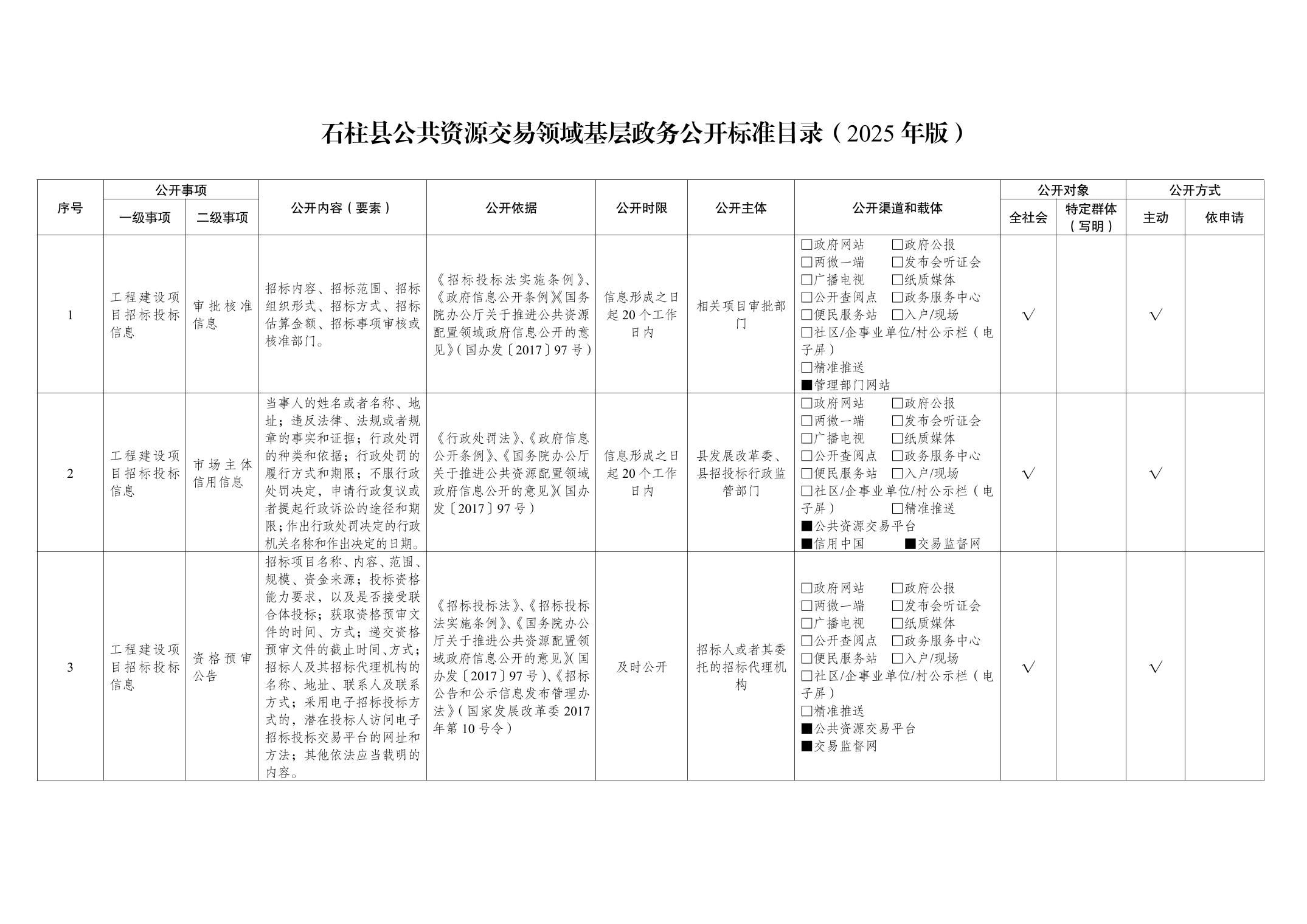 石柱县公共资源交易领域基层政务公开标准目录(2025年版)