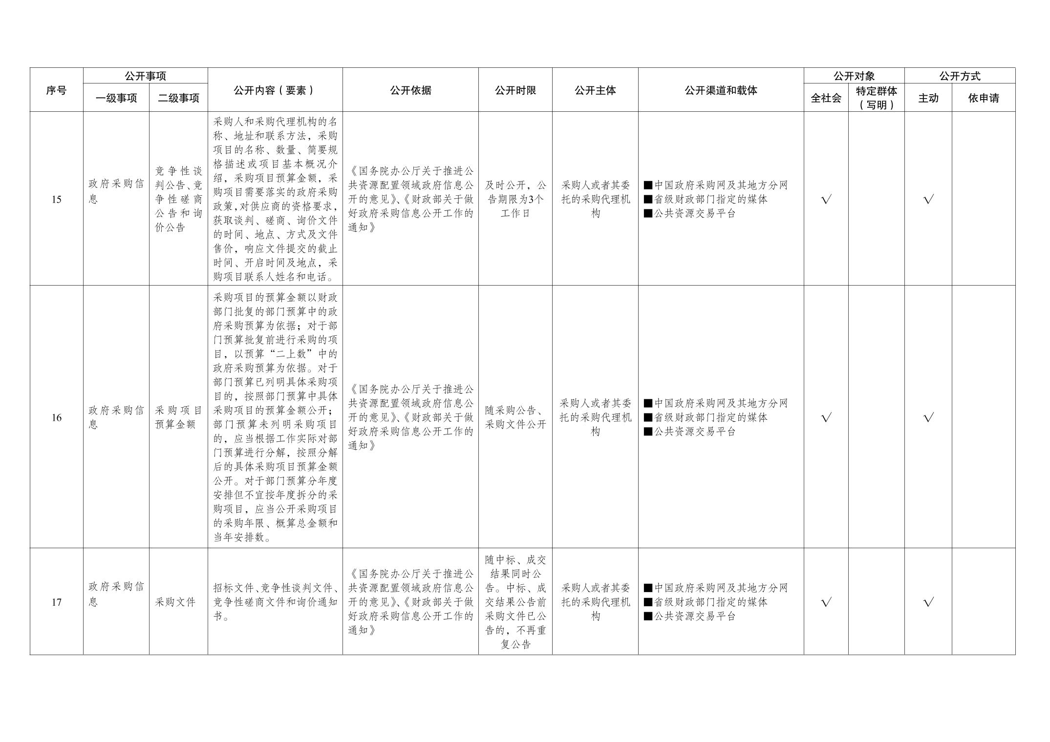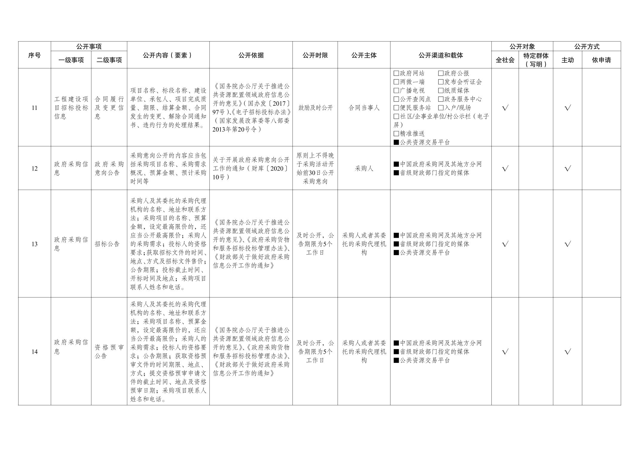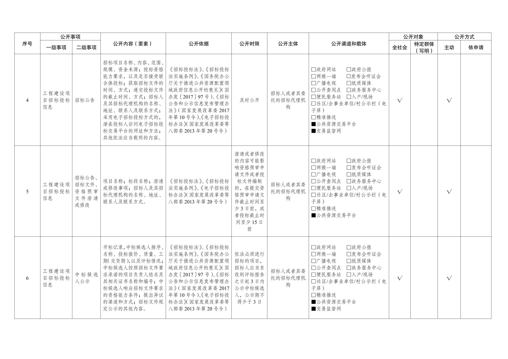 公共资源交易领域基层政务公开标准目录