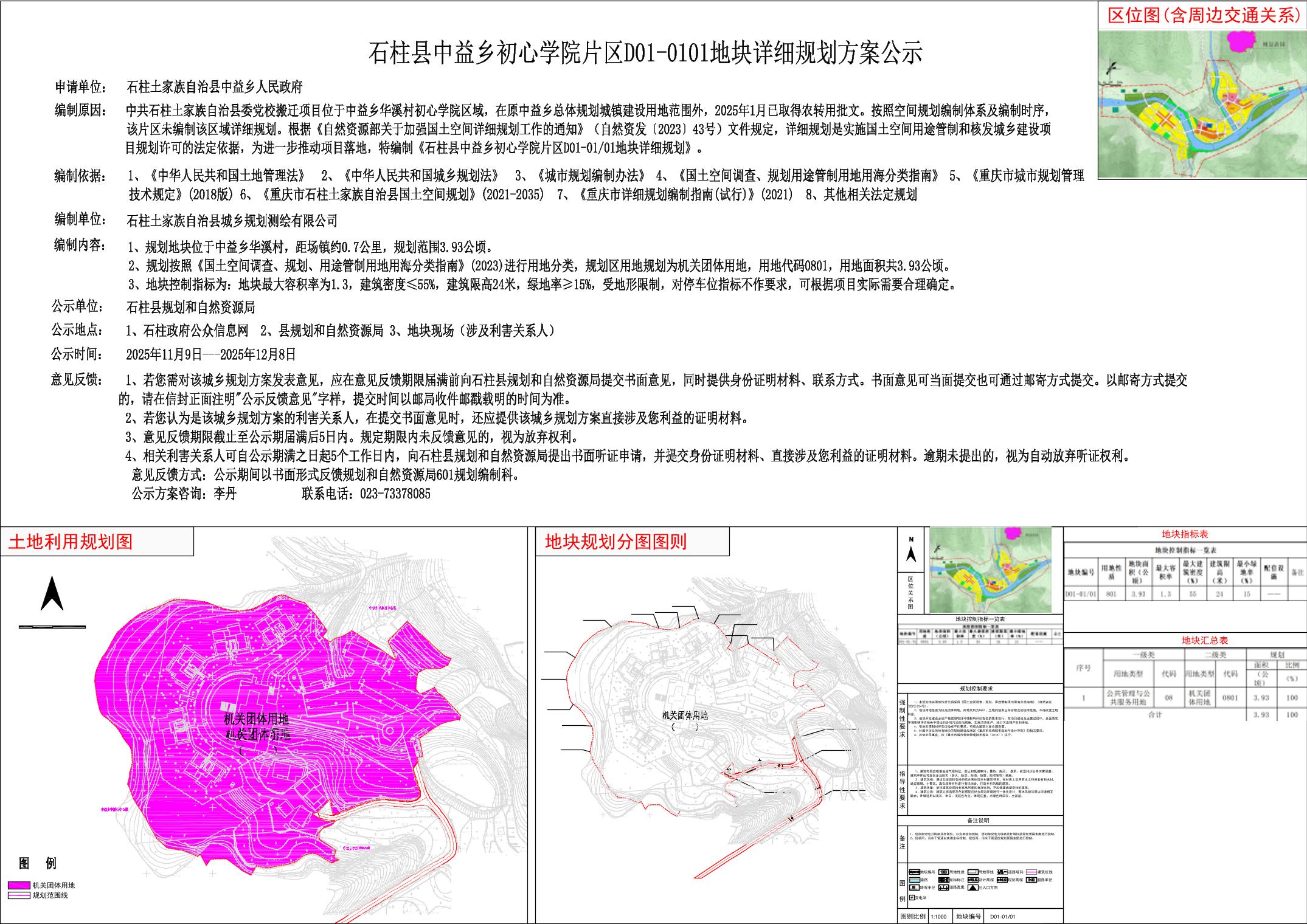石柱县中益乡初心学院片区D01-0101地块详细规划方案公示