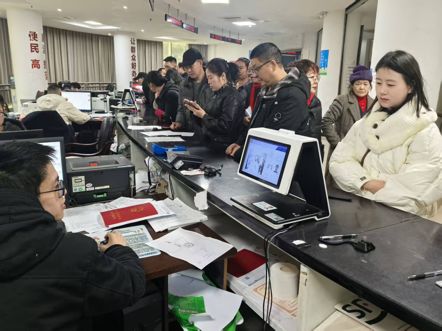县不动产登记中心迎来春节业务办理高峰。为回应群众关切、护航温暖归途,连日来,该中心主动靠前服务,优化服务流程、提升服务质效,以“冬日暖证”系列举措,让返乡群众办证省心、过年安心。