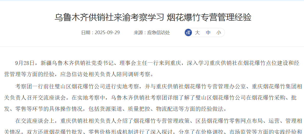 乌鲁木齐供销社来渝考察学习 烟花爆竹专营管理经验