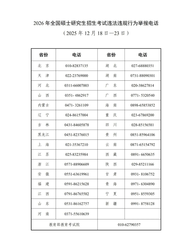2026研考在即,教育部公布招考违法违规行为举报电话