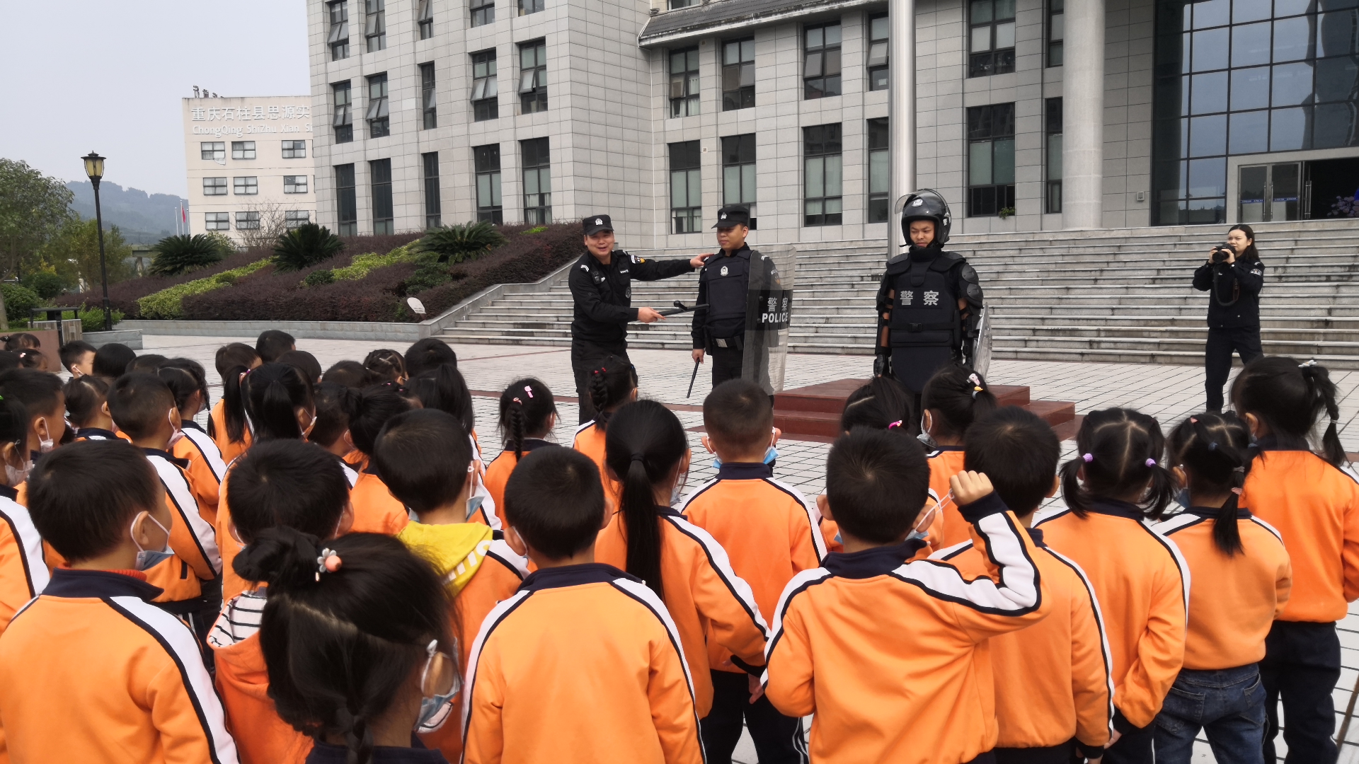 图为孩子们正在县公安局体验