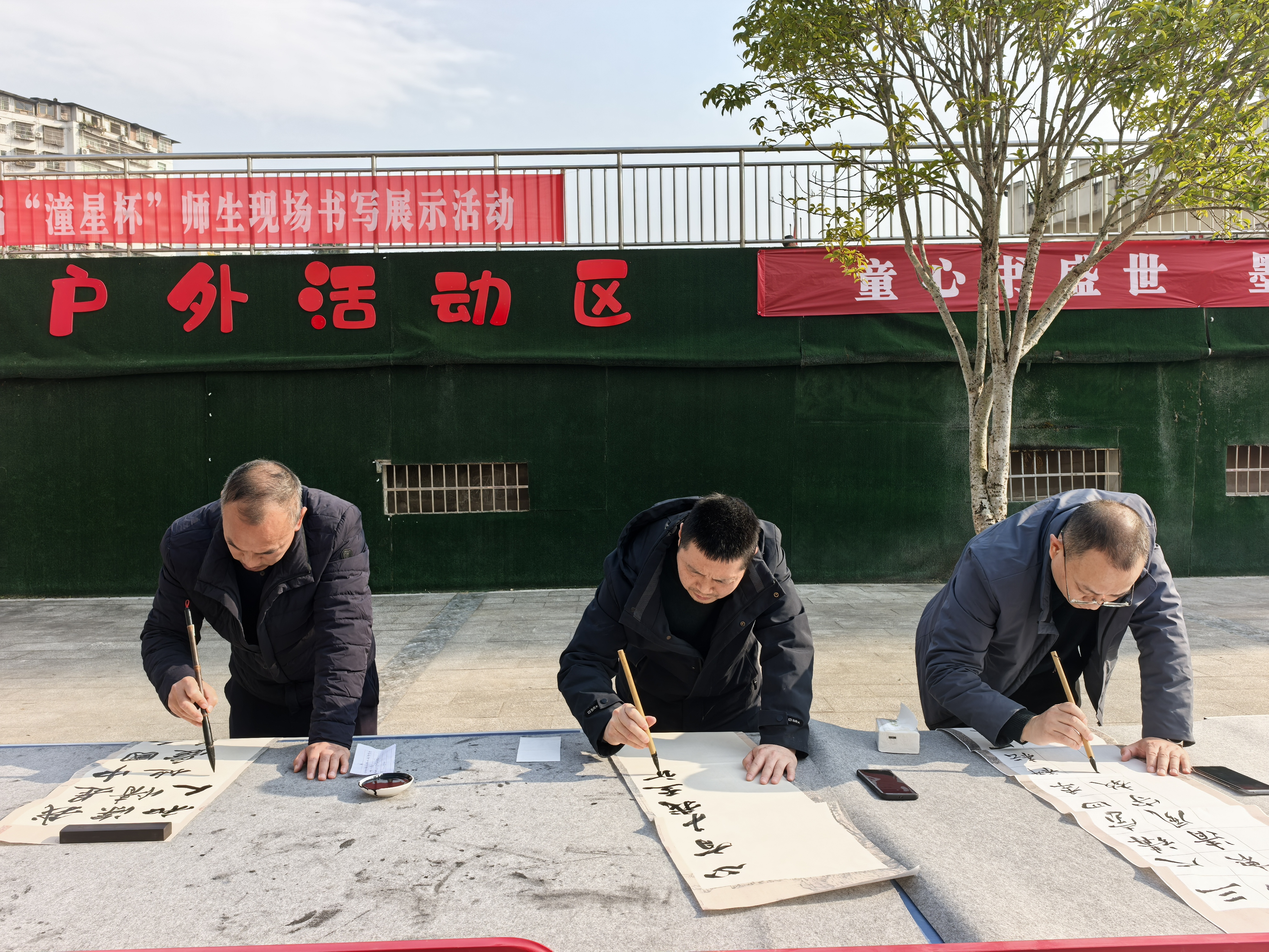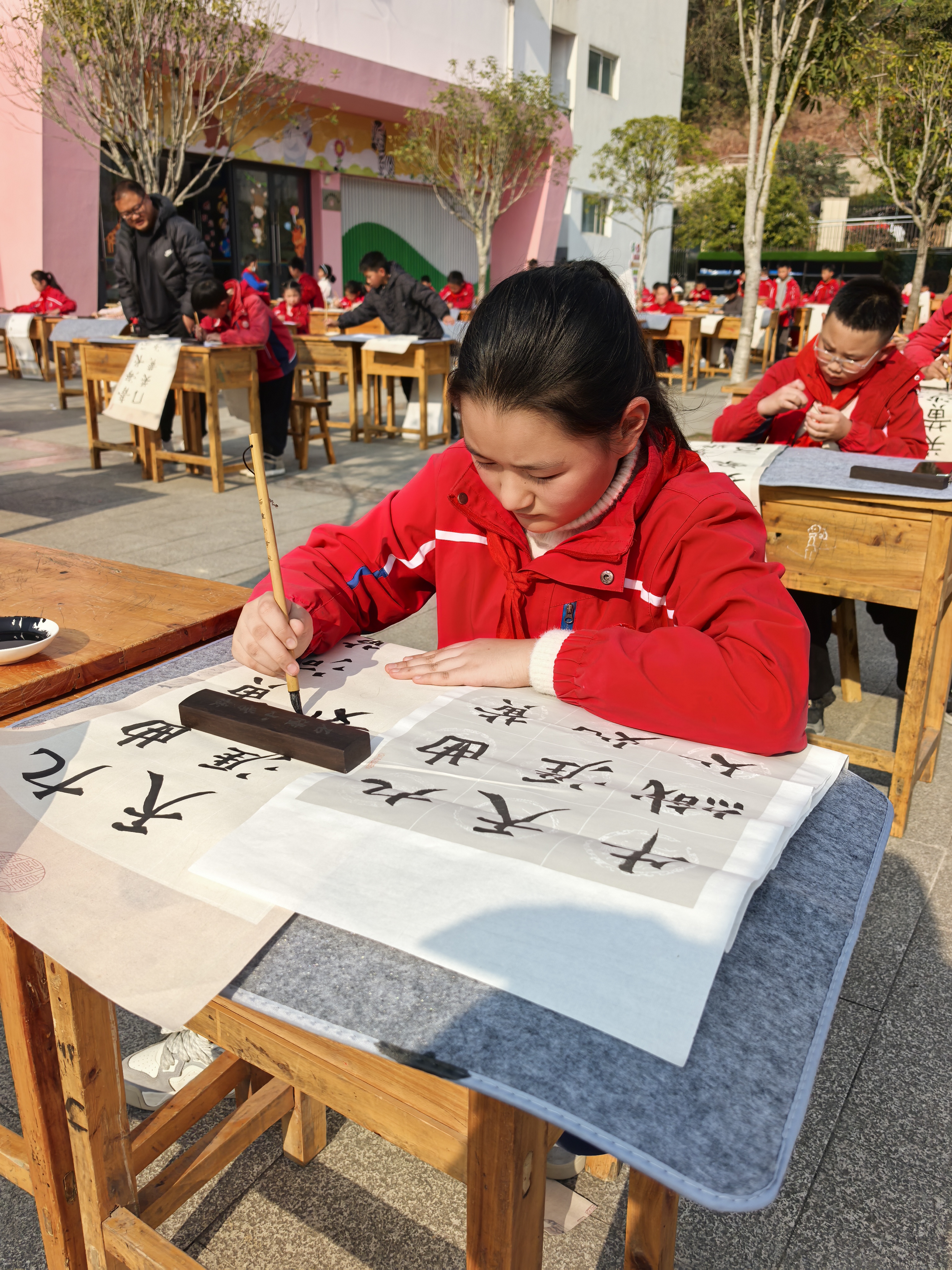 2025年12月1日,石柱土家族自治县石潼小学校园内洋溢着浓浓的文化气息,第三届“潼星杯”师生书法现场展示活动在教学楼内坝、外坝隆重举行。本次活动以“墨韵传薪续红色基因,笔意润心育时代新人”为主题,旨在弘扬中华优秀传统文化,提升师生书法技艺,陶冶审美情操,坚定文化自信。