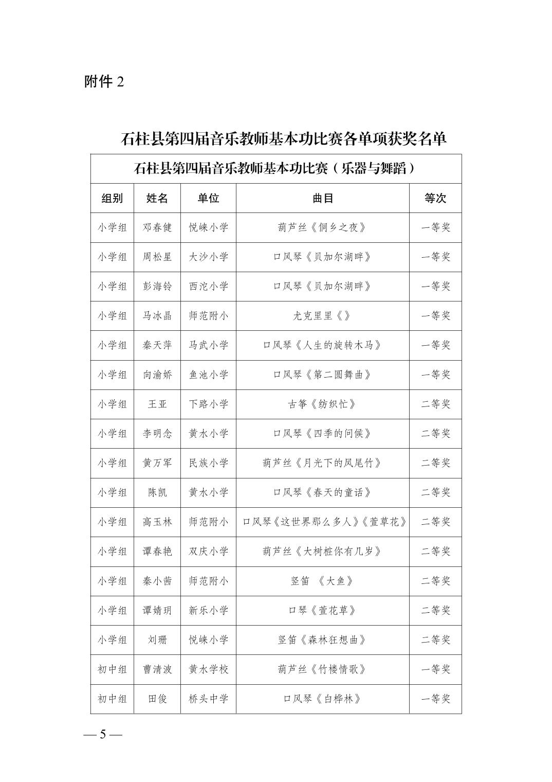 附件:1.石柱县第四届音乐教师基本功比赛五项全能获奖名单