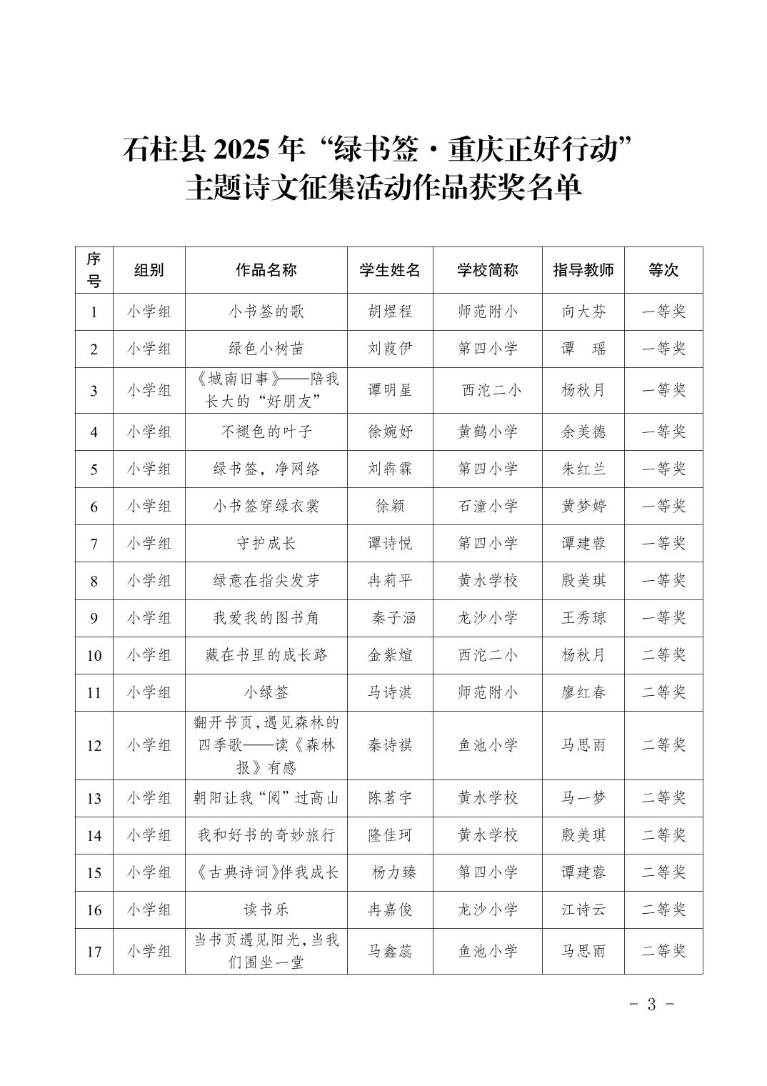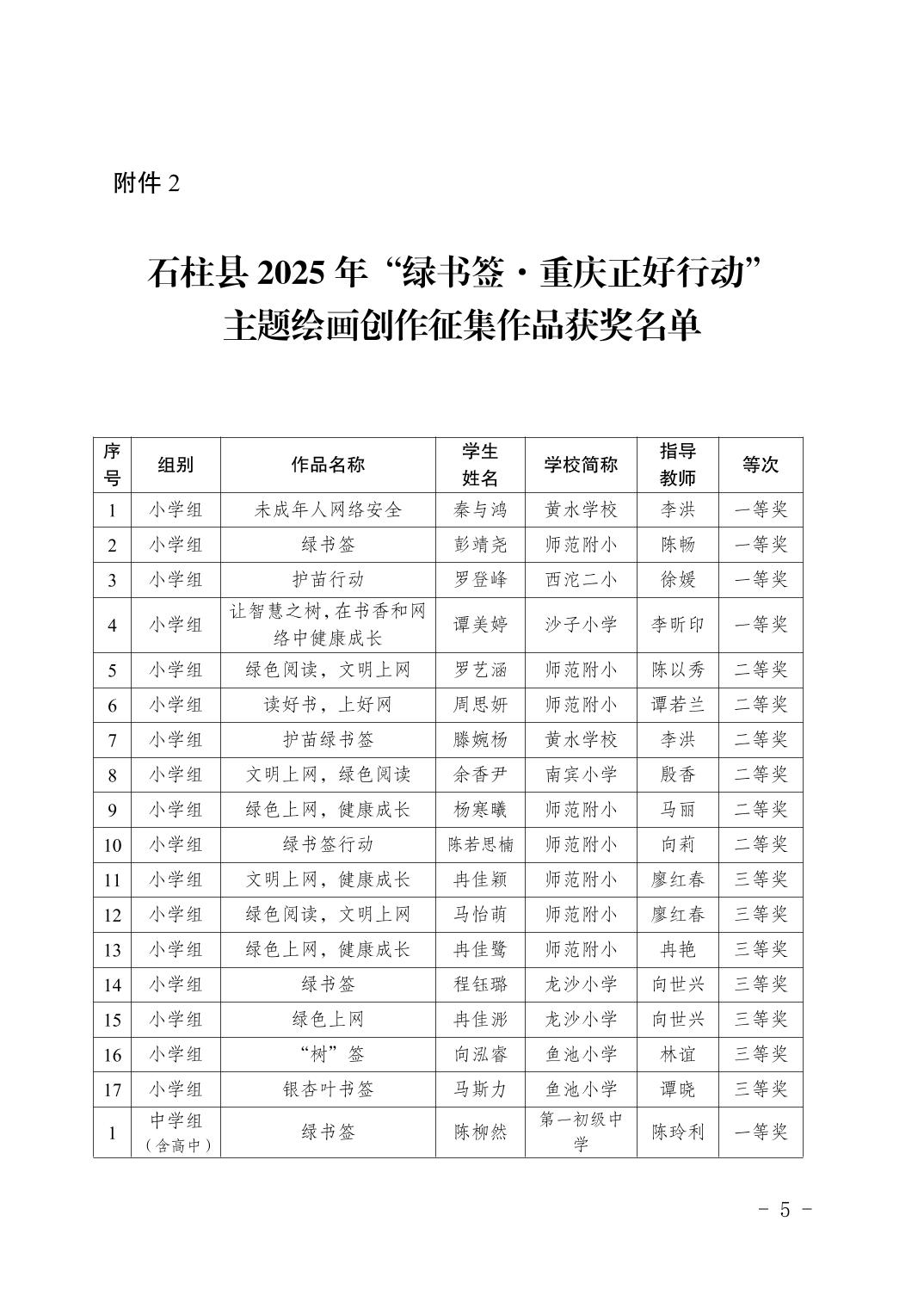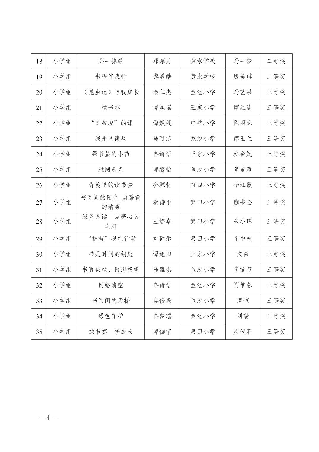 关于公布2025年“绿书签”主题读书县级比赛获奖名单的通知