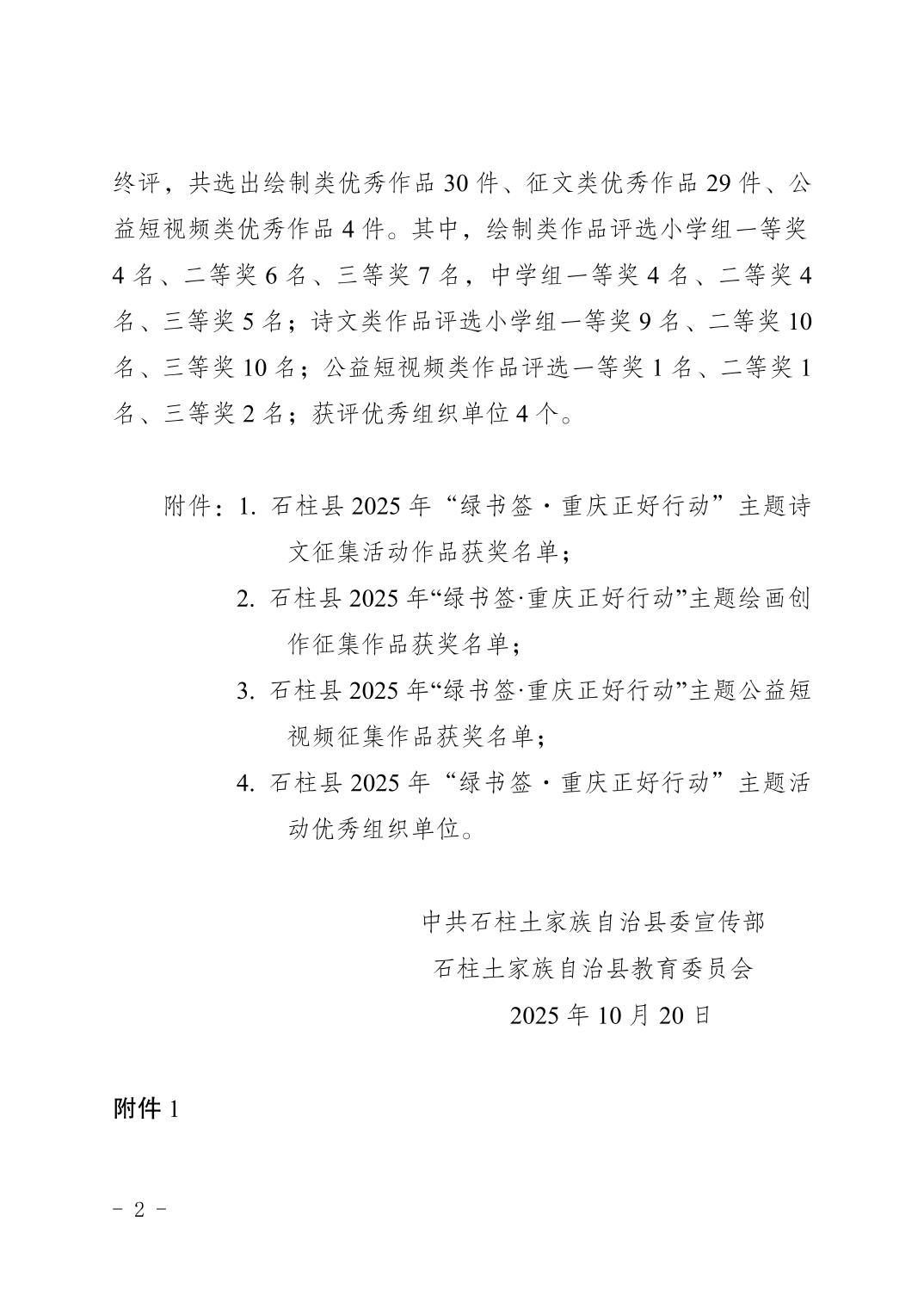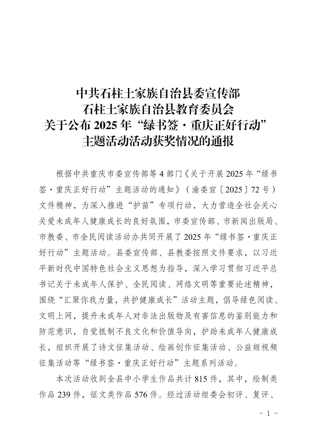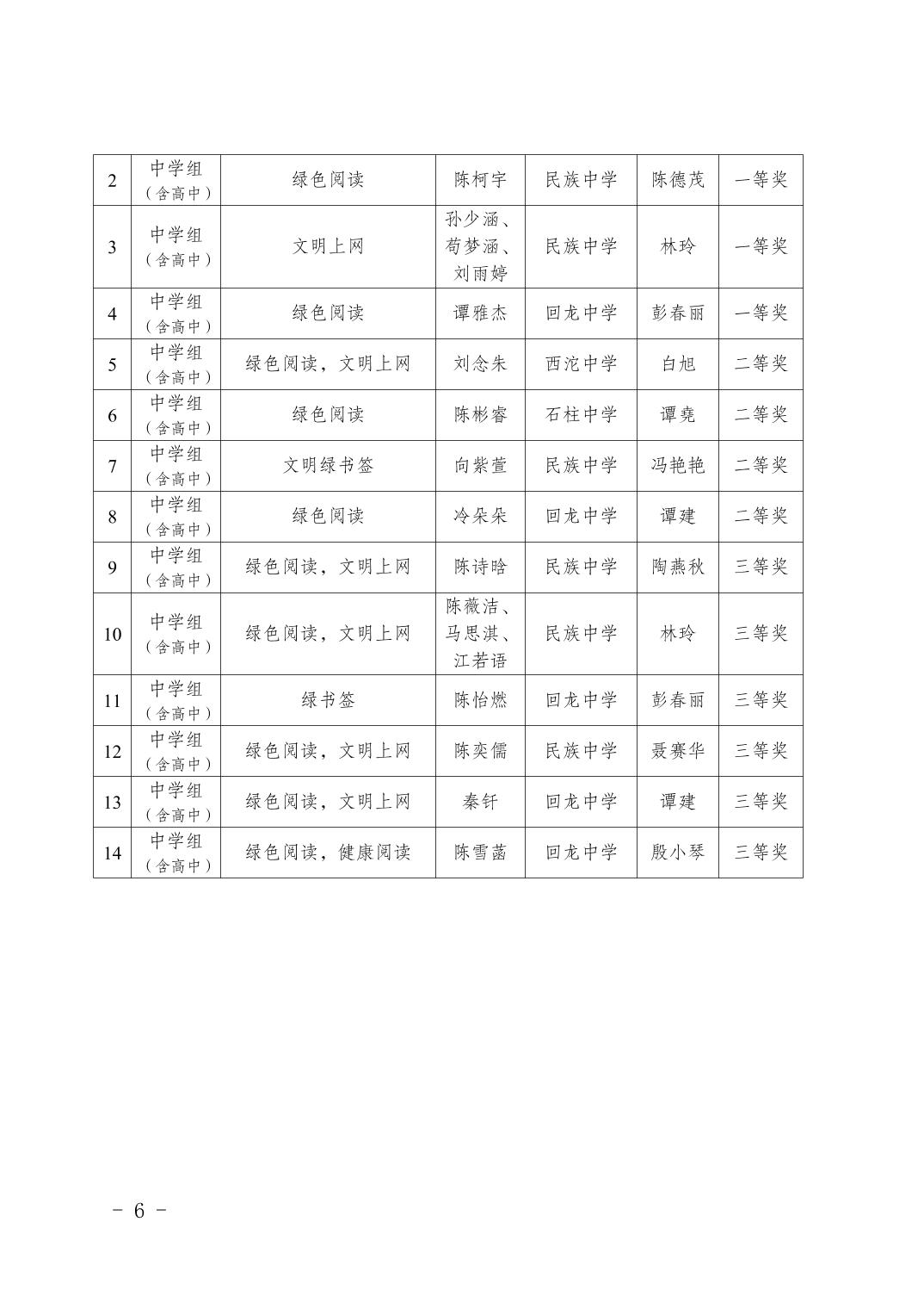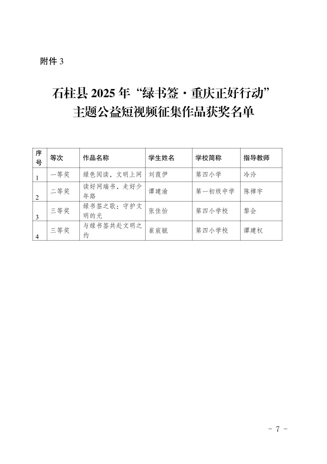 关于公布2025年“绿书签”主题读书县级比赛获奖名单的通知