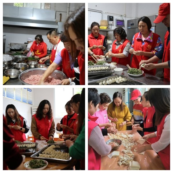 一到场,慈善志愿者们便到厨房一起准备饺子、包面的食材,然后其乐融融地一起包饺子、包包面。正所谓人多力量大,不到一小时就已经准备好了午餐所需的食物。