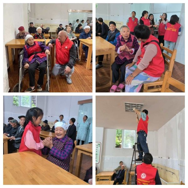 活动现场,有的志愿者与老人们唠家常,让他们更放松。特别是还有小志愿者为老人唱歌,让老人欣喜无比。还有志愿者在修缮养老院的电路设施。