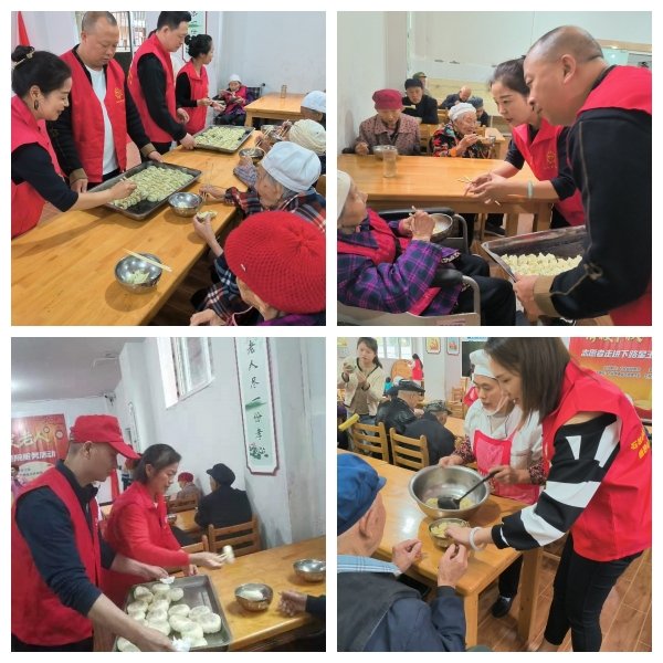 到了午餐时间,志愿者们为老人们端上热腾腾的饺子、包面供老人们品尝。