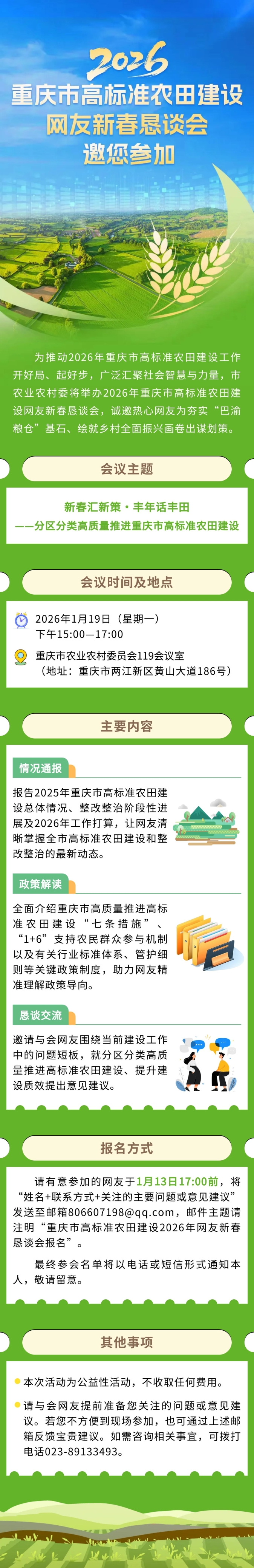 2026-01-12报名 | 重庆市高标准农田建设“ 2026年网友新春恳谈会”邀您参加