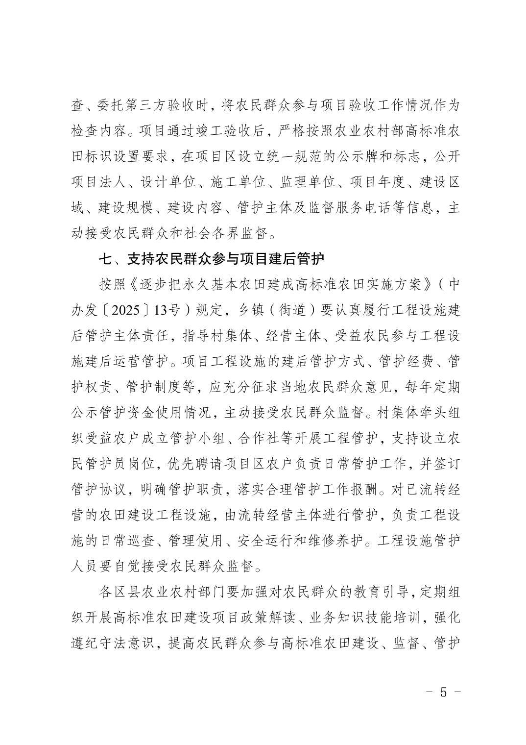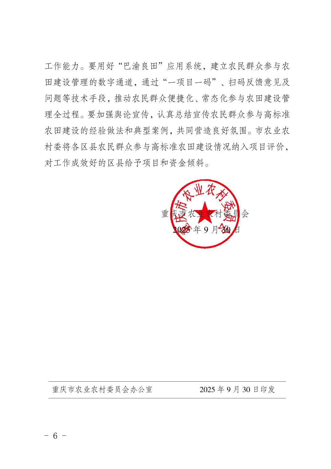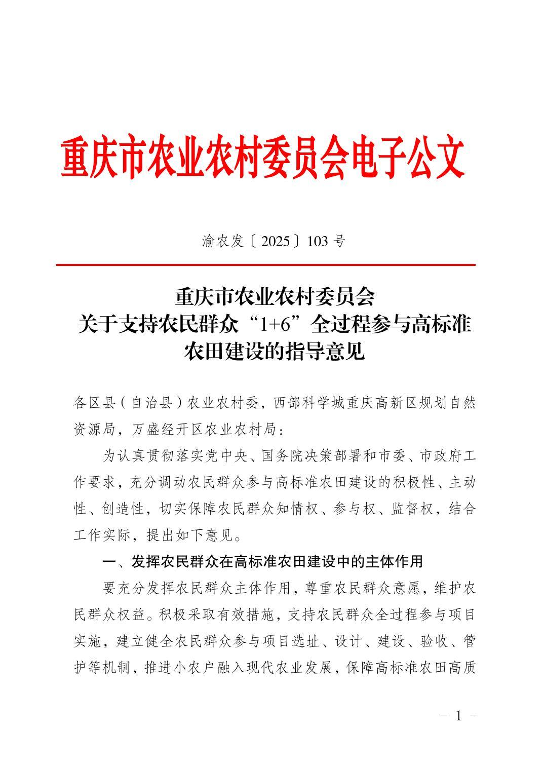 重庆市农业农村委员会关于支持农民群众“1+6”全过程参与高标准农田建设的指导意见