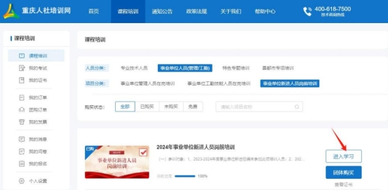 事业单位新进人员岗前培训在线学习流程及操作明