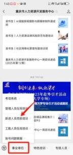 1.关注微信公众号:通过搜索“重庆市人力资源开发服务中心”或扫描下方二维码关注市人服中心微信公众号。
