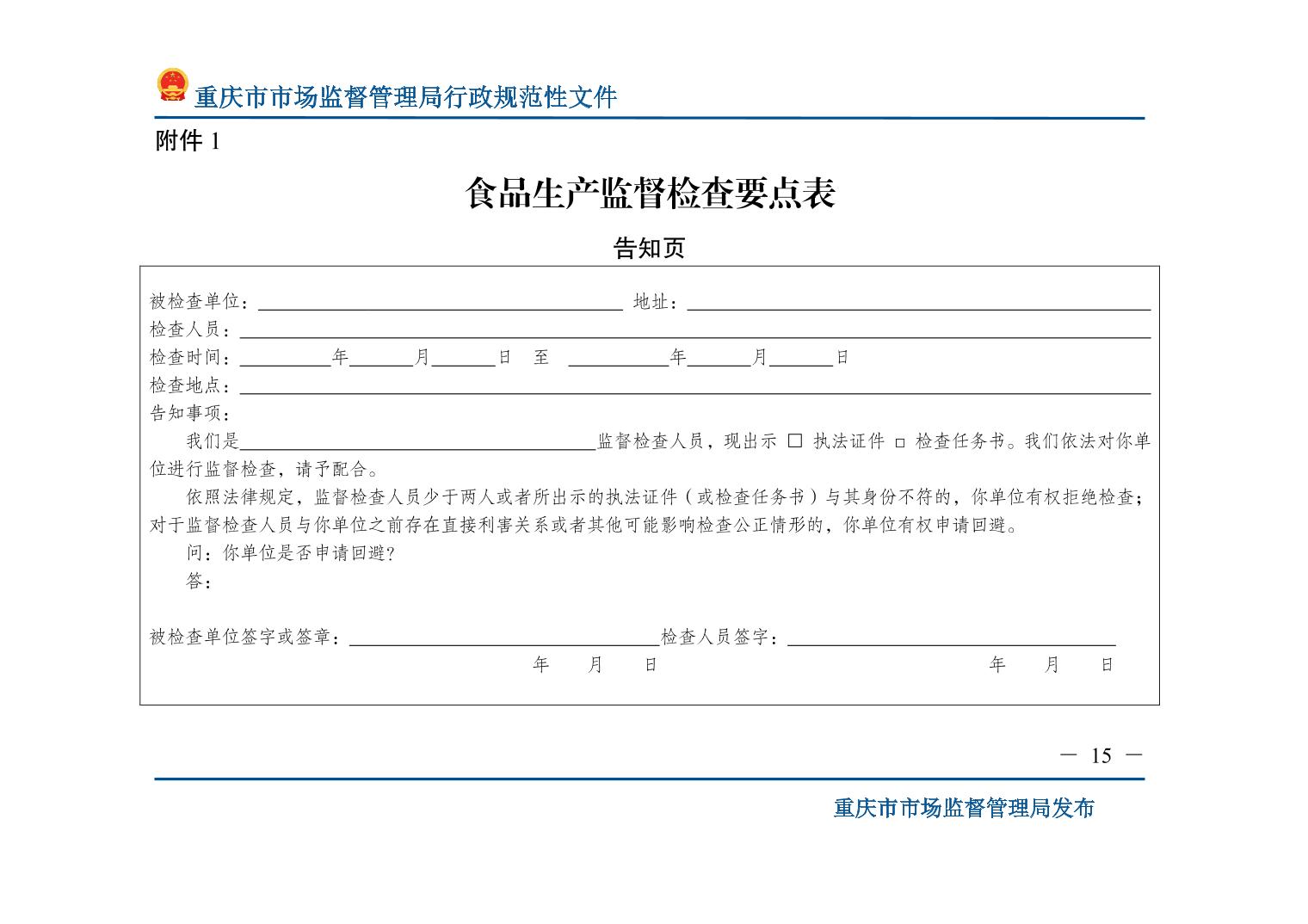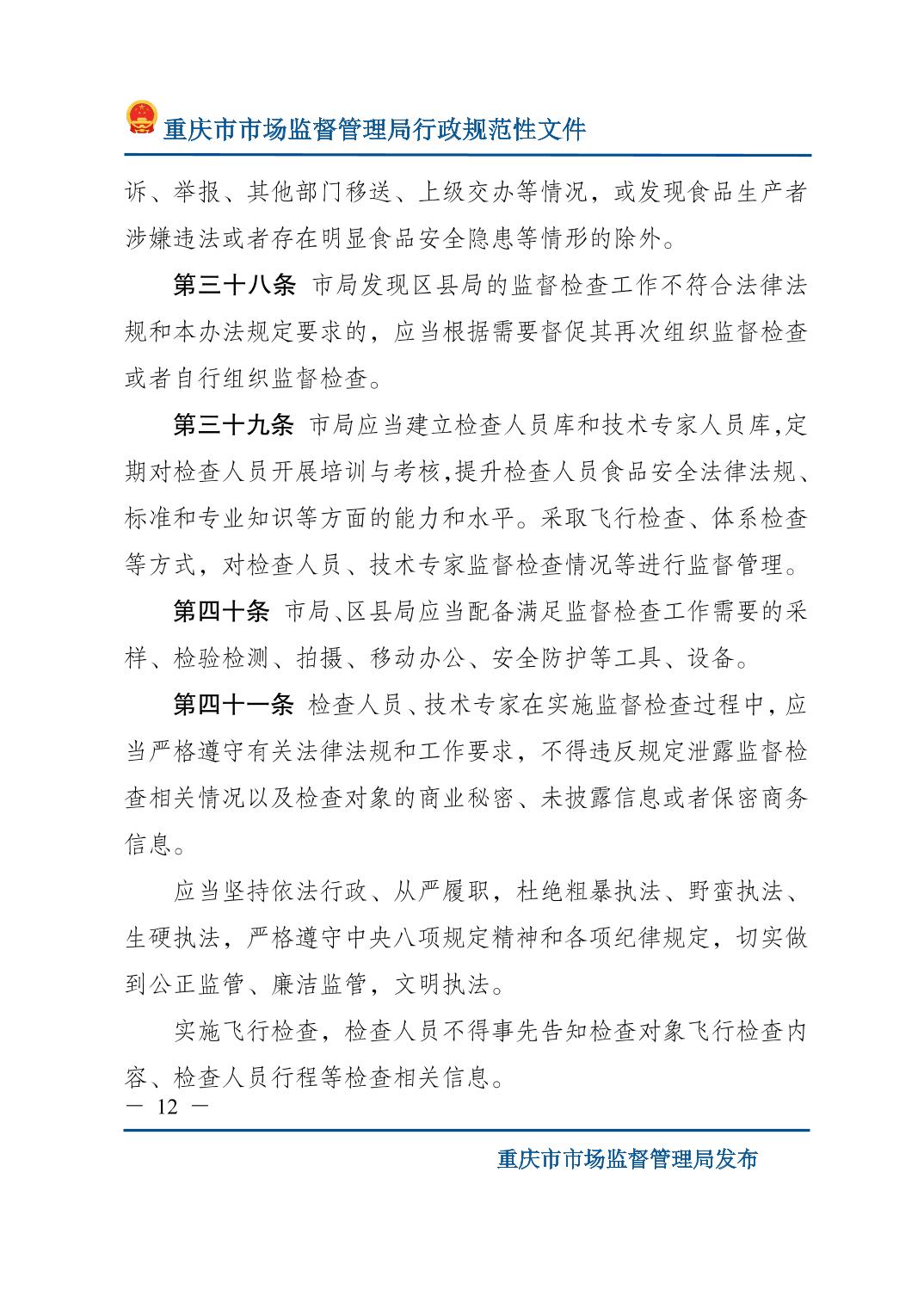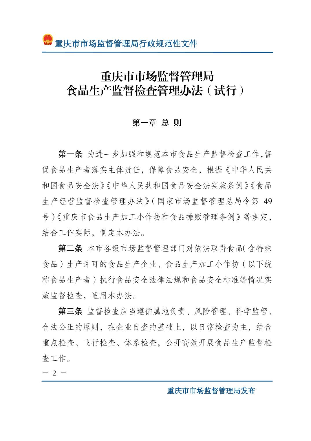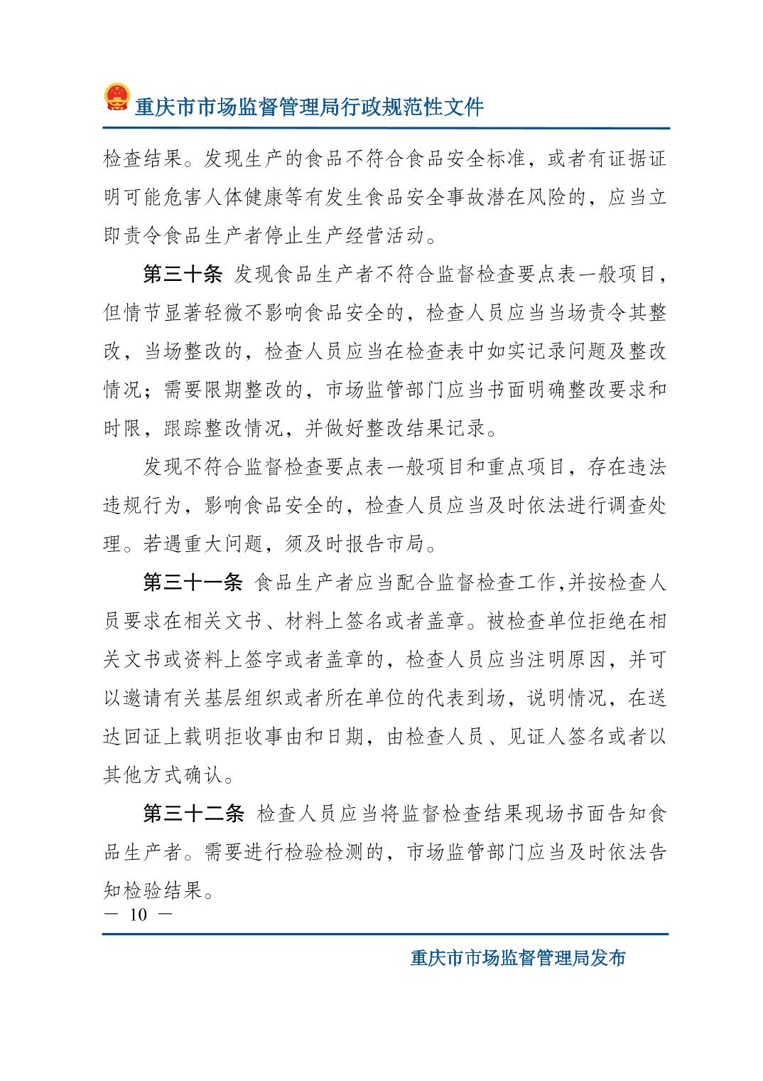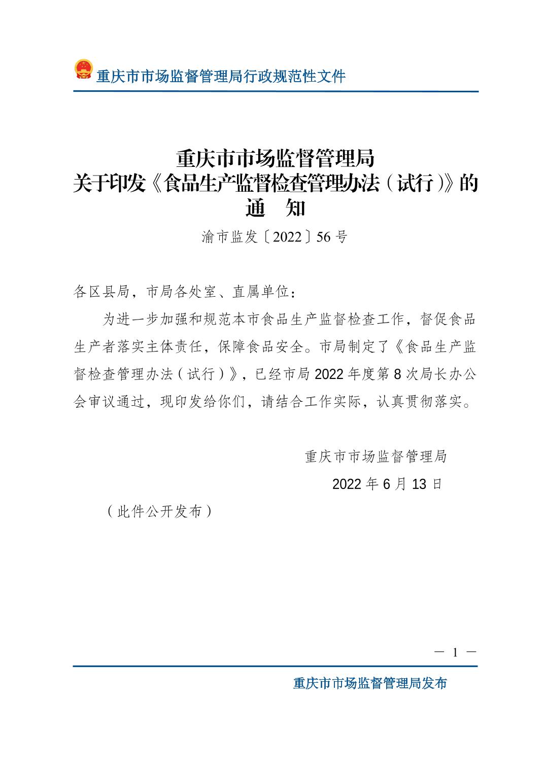 重庆市市场监督管理局关于印发《食品生产监督检查管理办法(试行)》的通知.pdf