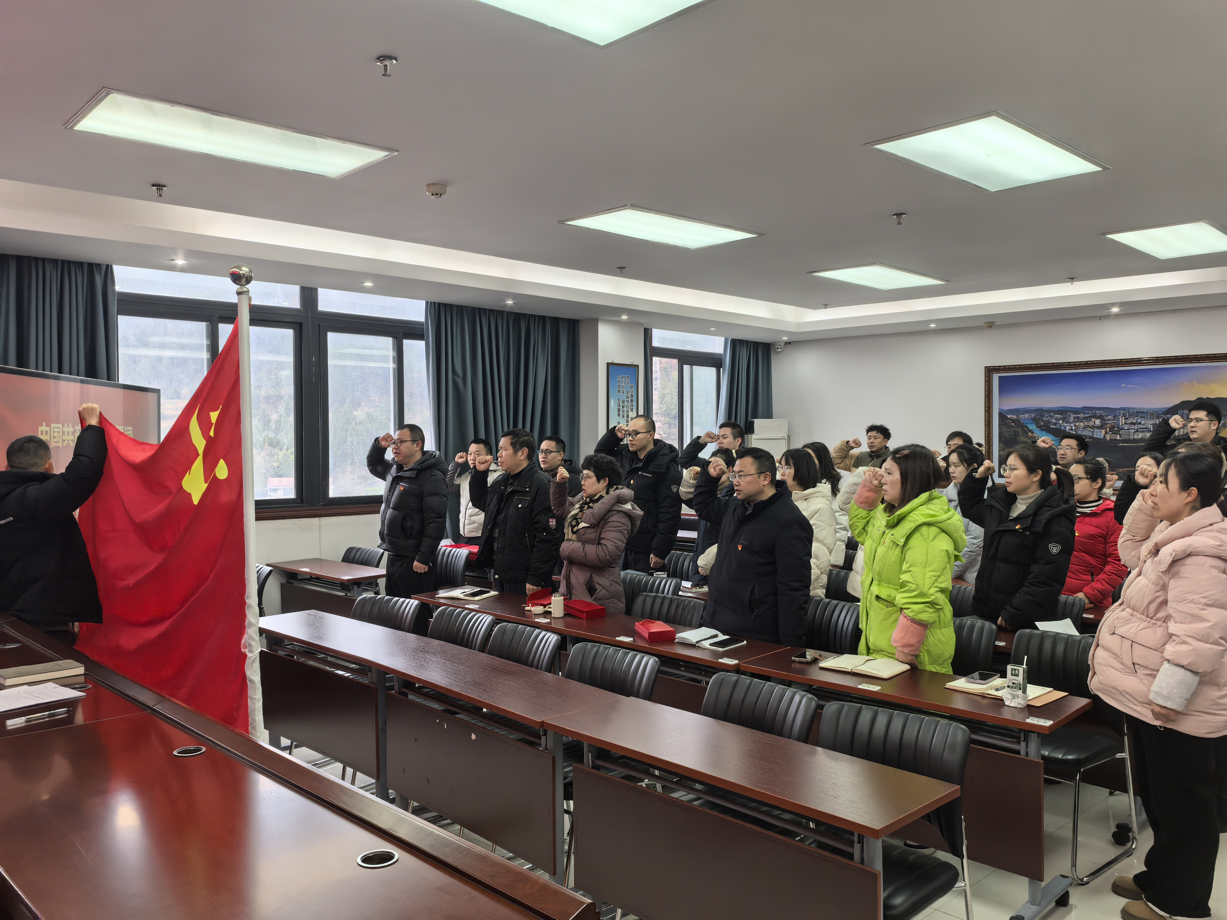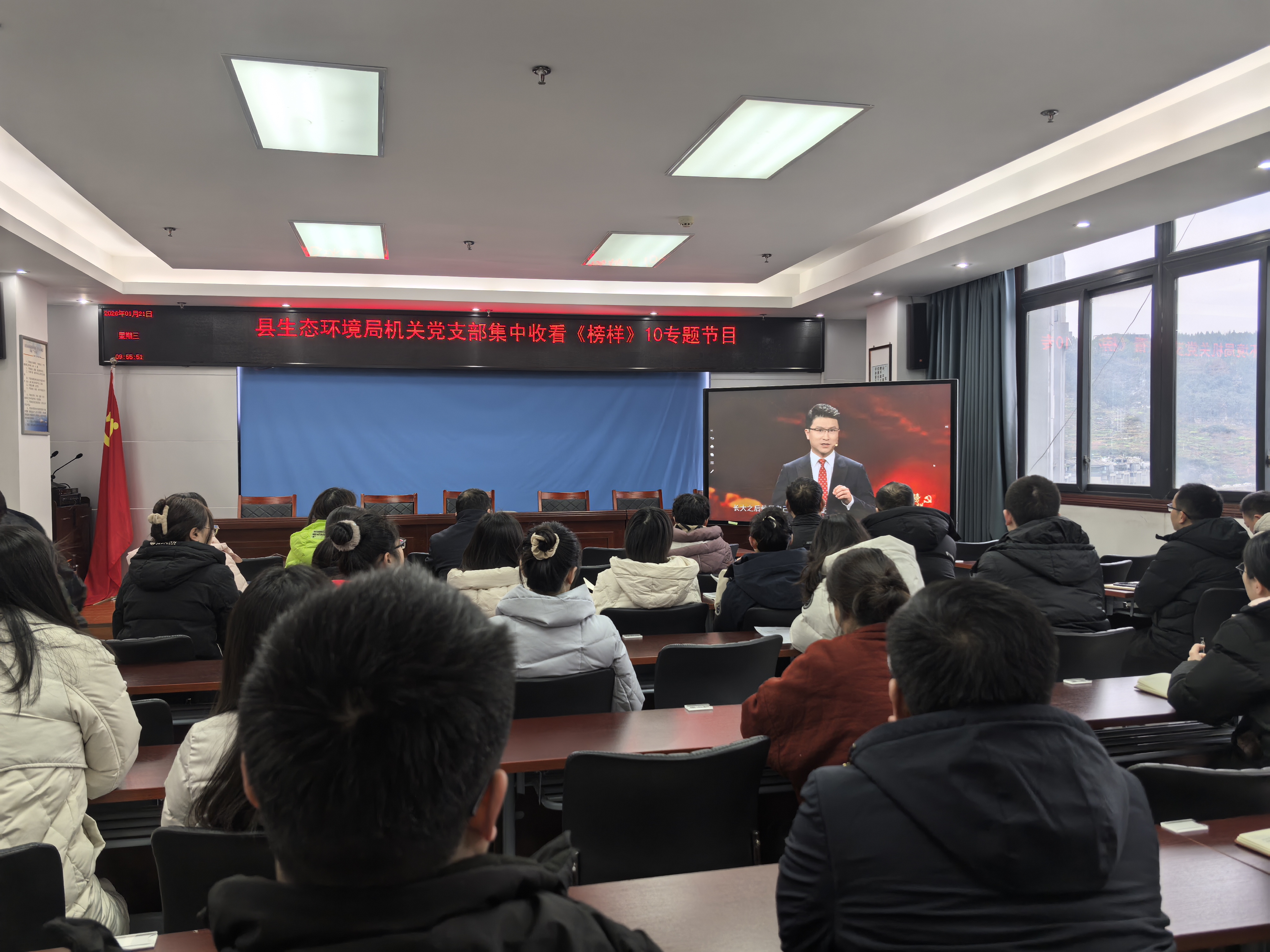 1月21日,县生态环境局机关党支部组织全体党员集中收看了《榜样10》专题节目,并举行了庄严的重温入党誓词活动。