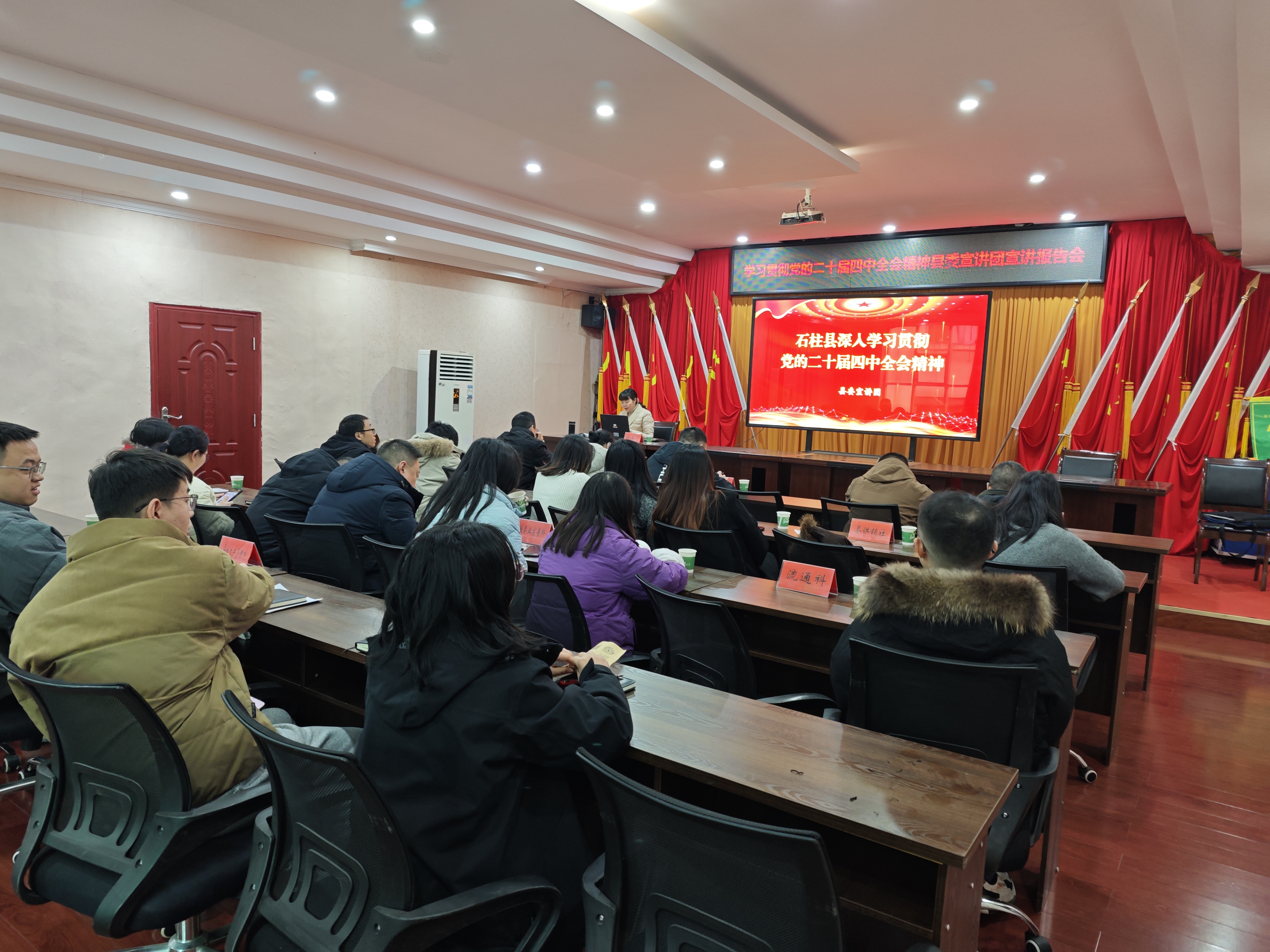 12月11日,县商务委召开学习贯彻党的二十届四中全会精神宣讲报告会。县委宣讲团成员、县商务委党组书记、主任冉孟于同志作专题宣讲,县商务委、县供销社干部职工参加。
