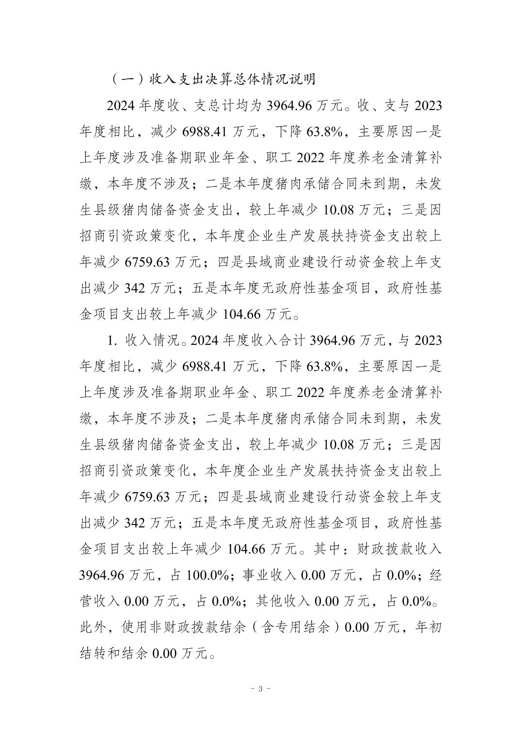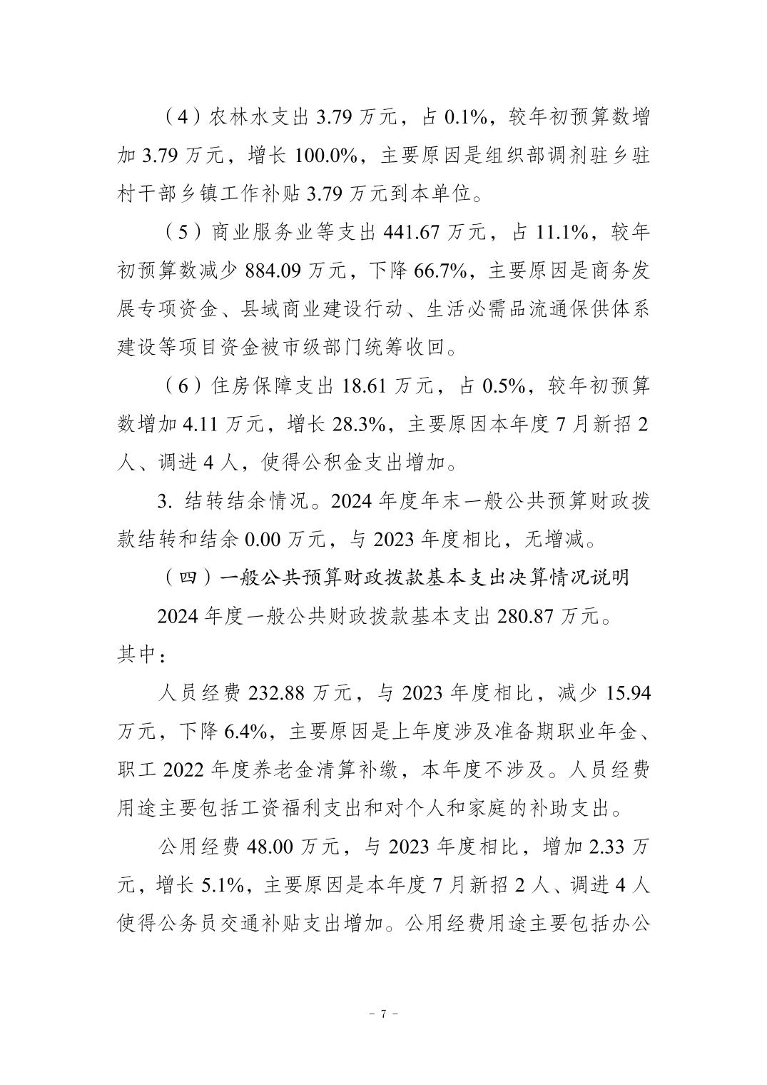 重庆市石柱土家族自治县商务委员会(本级) 2024年度部门决算情况说明