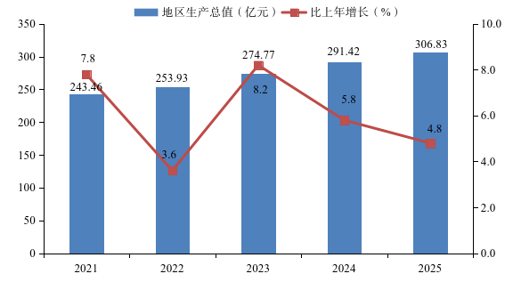 图1 2021-2025年地区生产总值及其增长速度