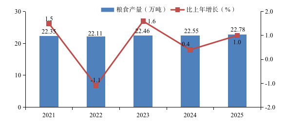 图2 2021-2025年粮食产量及其增长速度