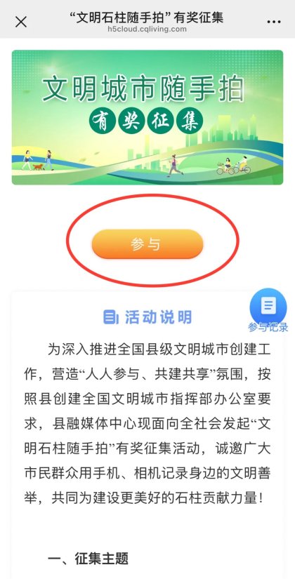 为深入推进全国县级文明城市创建工作,营造“人人参与、共建共享”氛围,按照县创建全国文明城市指挥部办公室要求,县融媒体中心现面向全社会发起“文明石柱随手拍”有奖征集活动,诚邀广大市民群众用手机、相机记录身边的文明善举,共同为建设更美好的石柱贡献力量!