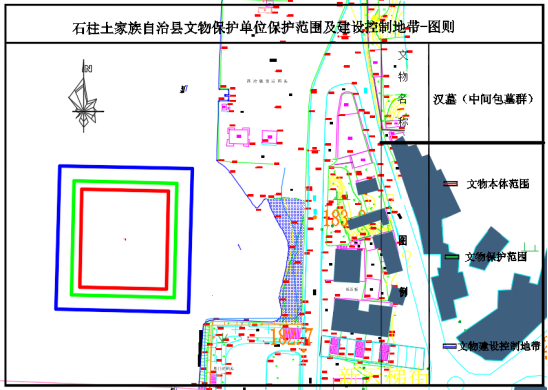 建设控制地带:东、南、西、北均至保护范围边界外扩9米。
