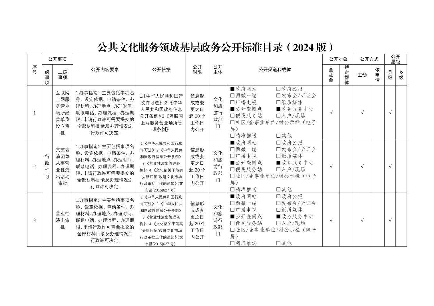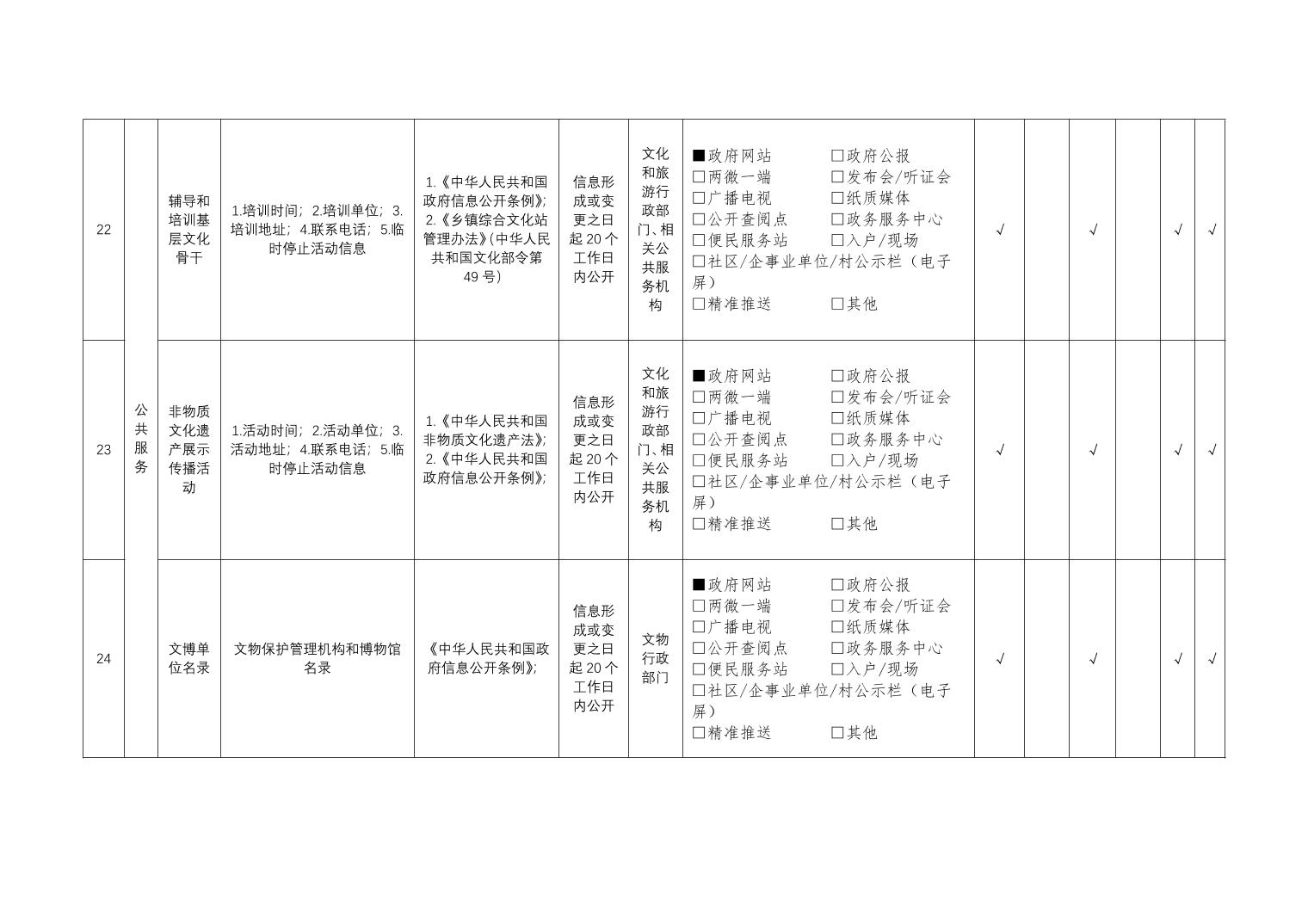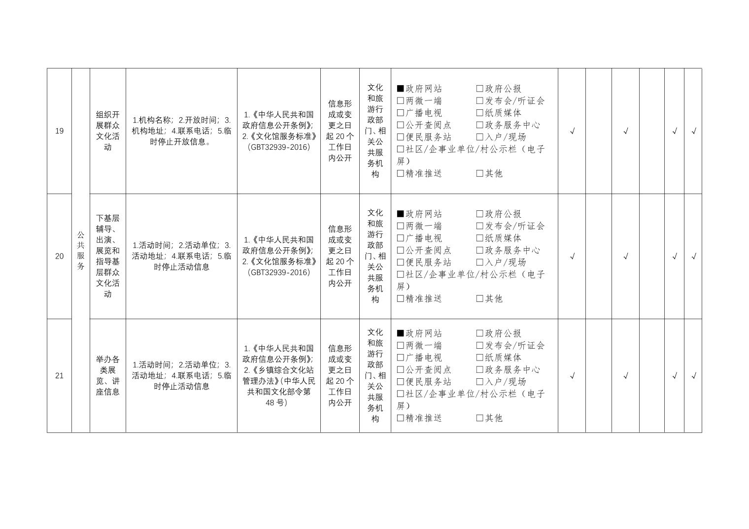公共文化服务领域基层政务公开标准目录