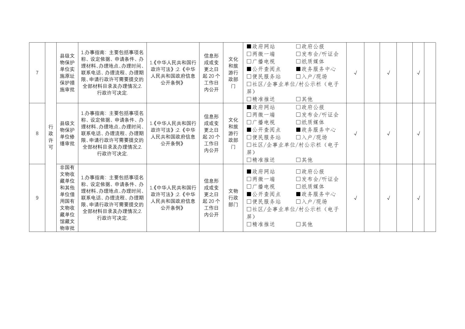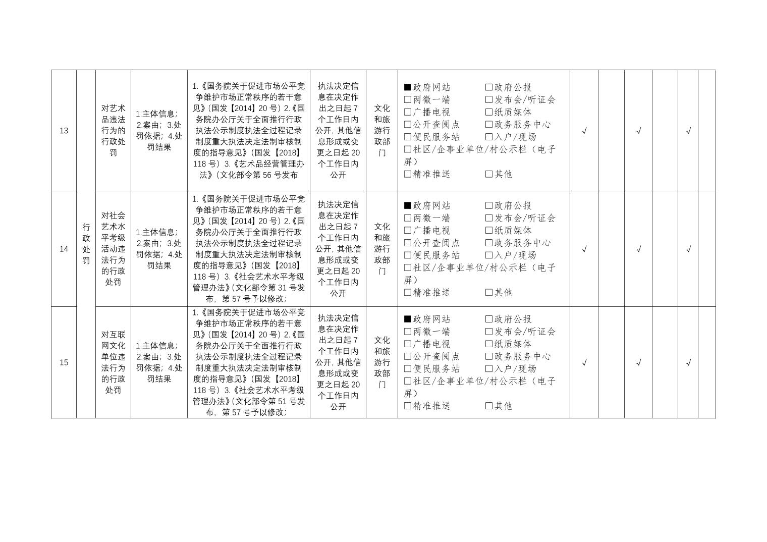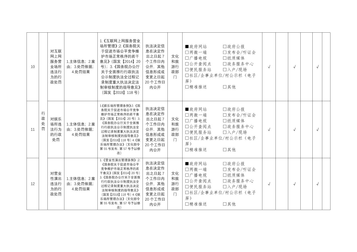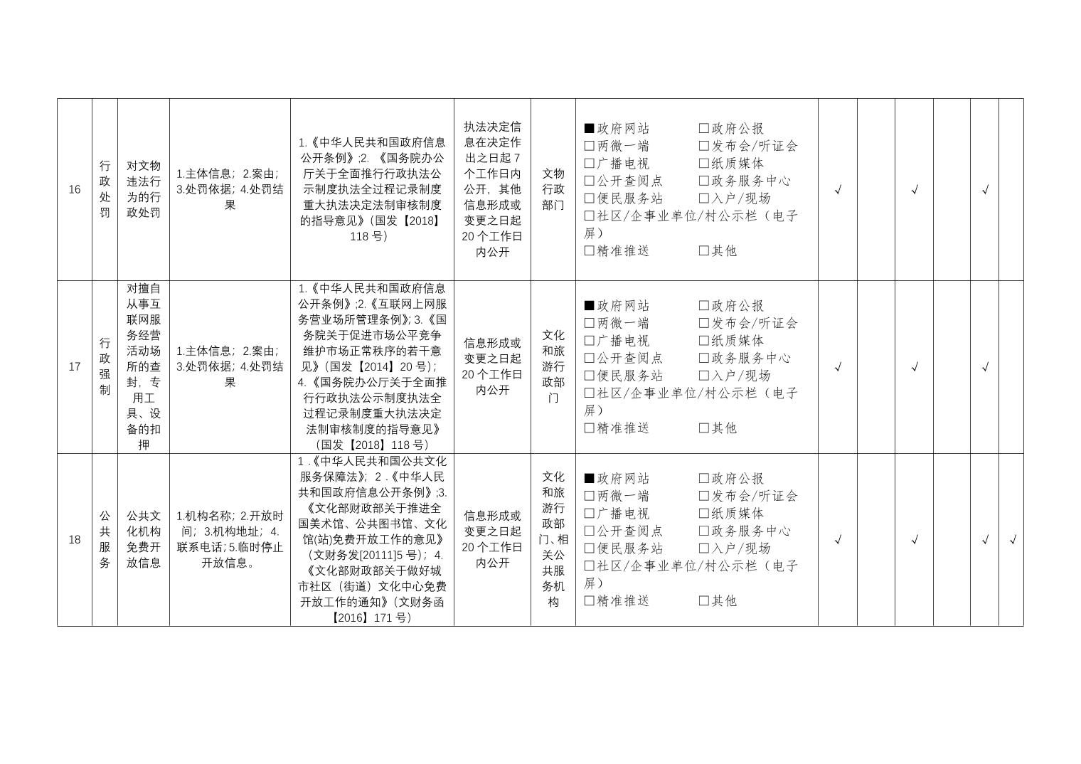 公共文化服务领域基层政务公开标准目录
