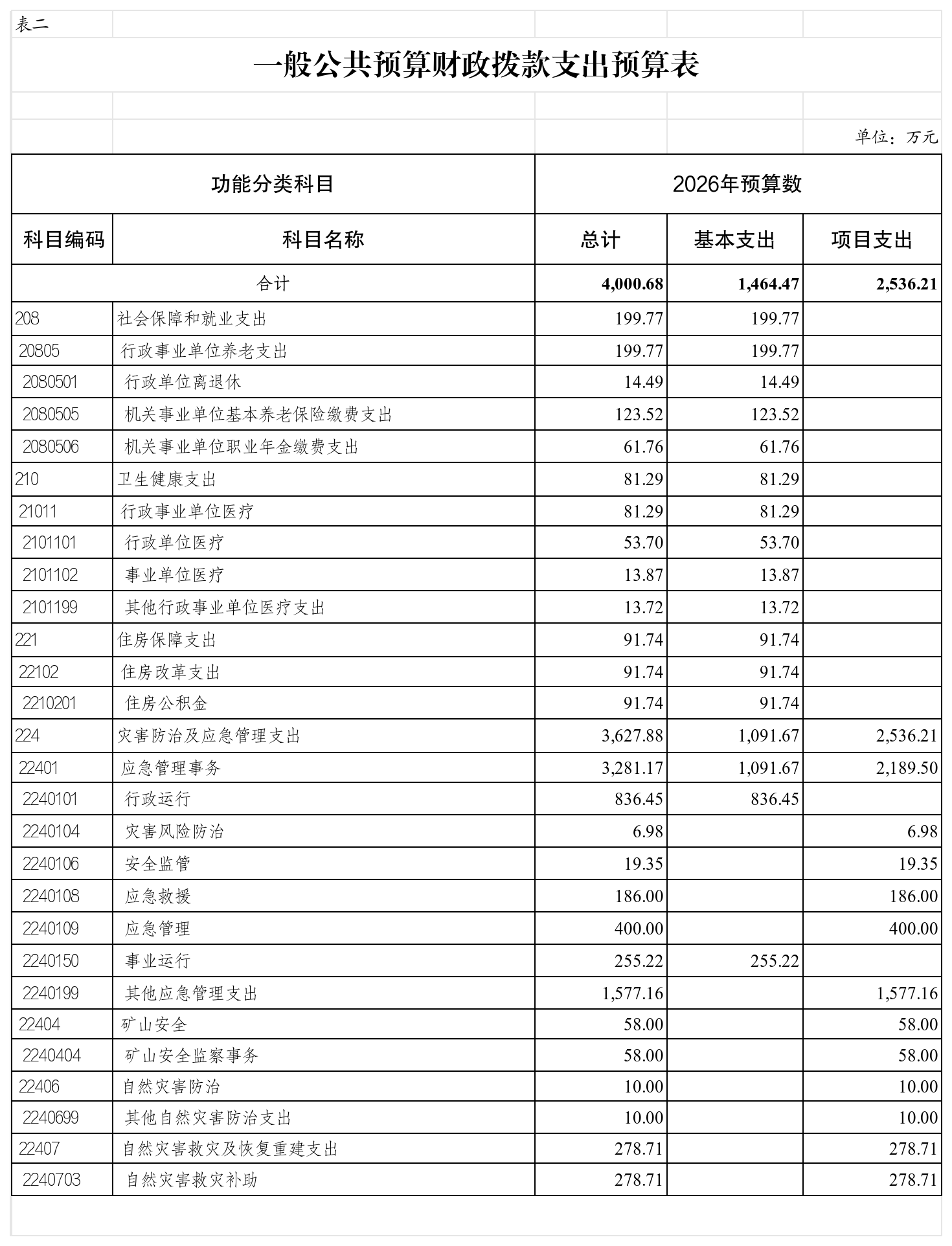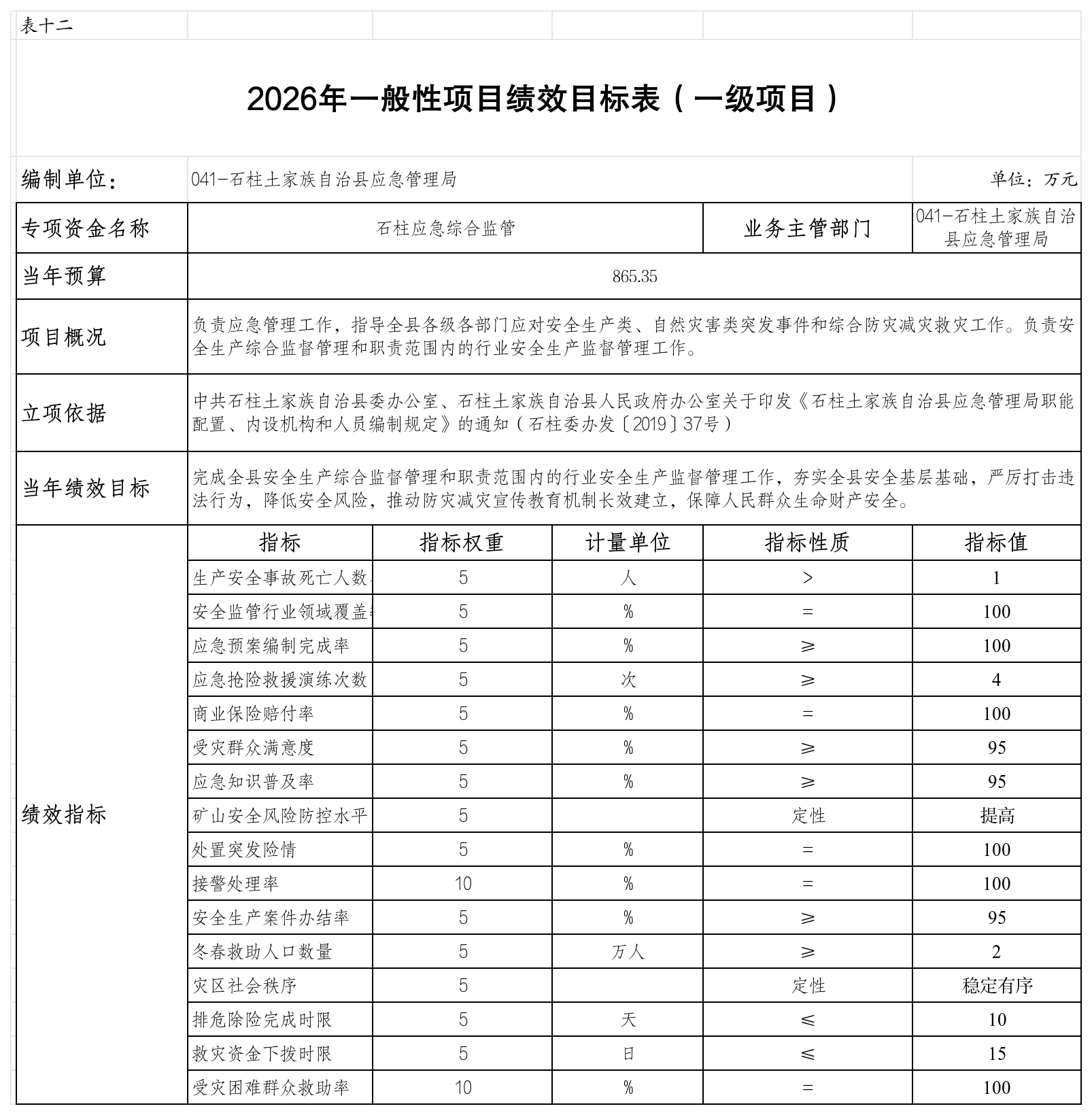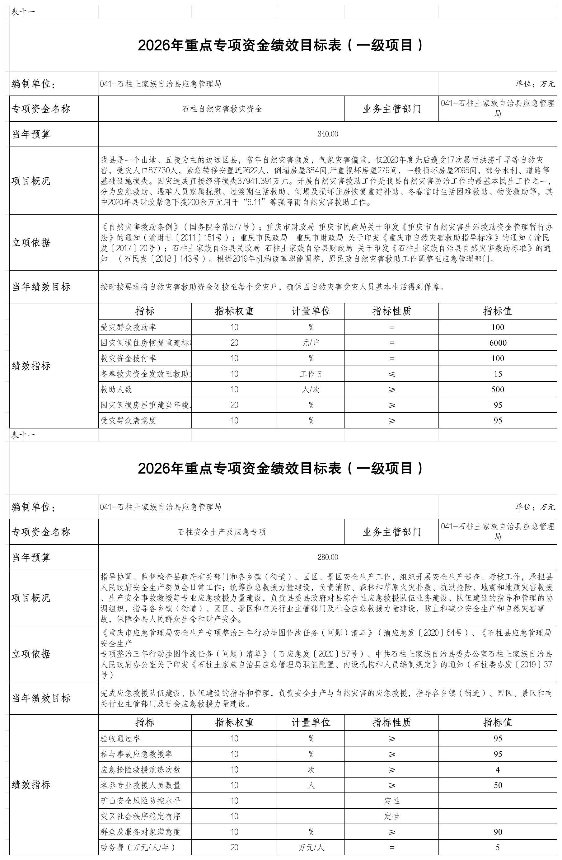 石柱土家族自治县应急管理局 2026年部门预算情况说明