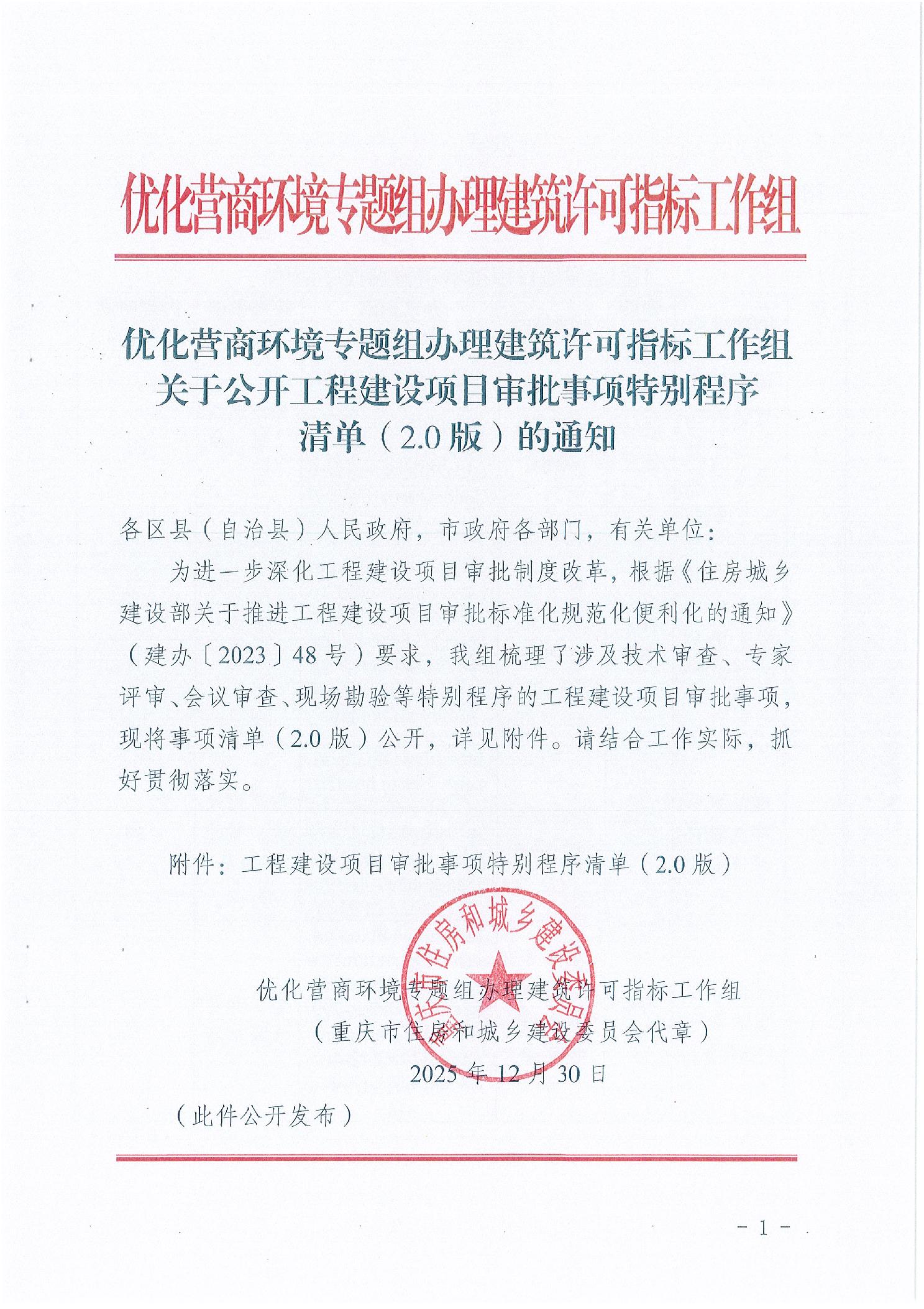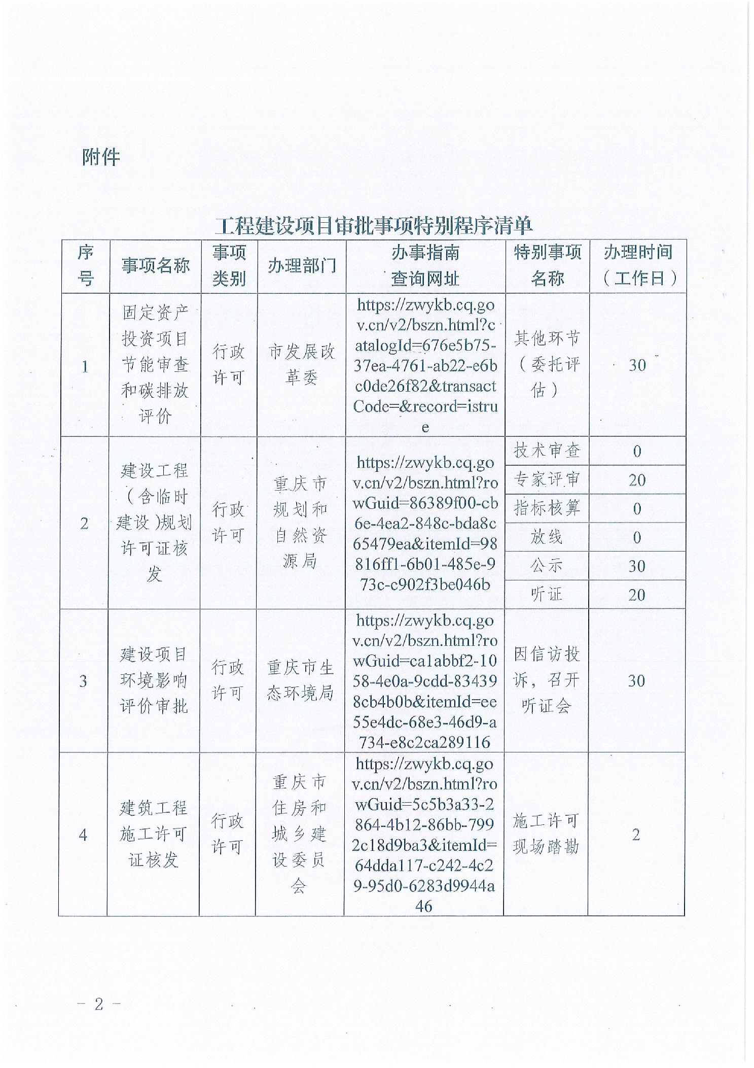 优化营商环境专题组办理建筑许可指标工作组关于印发重庆市工程建设项目审批及办理事项清单(2.0版)的通知