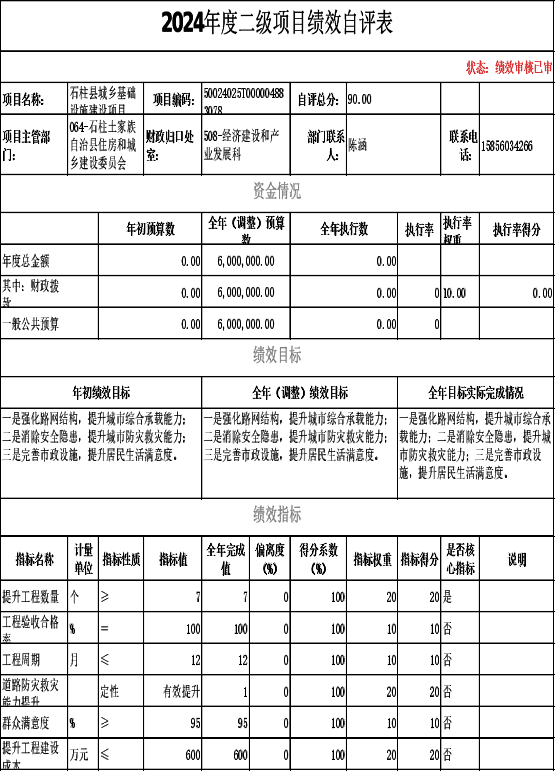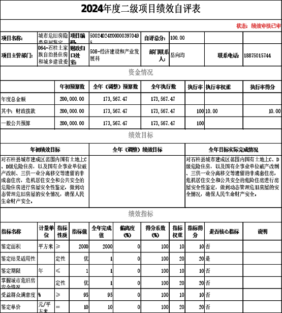 064-石柱土家族自治县住房和城乡建设委员会_2024年度部门决算报告及报表(部门)