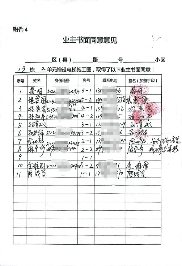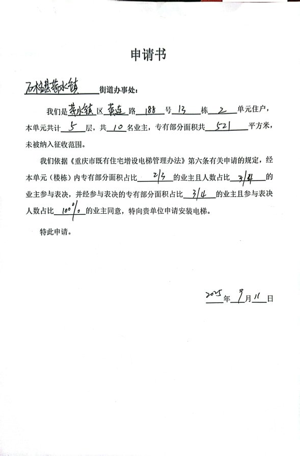 附件:书面申请、同意增设电梯的业主名单及书面同意意见、增设电梯示意图