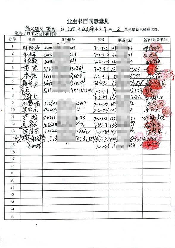 附件:书面申请、同意增设电梯的业主名单及书面同意意见、增设电梯示意图