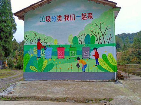 南峰村的垃圾分类宣传墙。通讯员 谭睿 摄