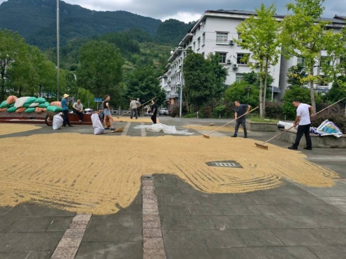 马武镇:党员干部助农抢收 广场变身“便民晒谷场”