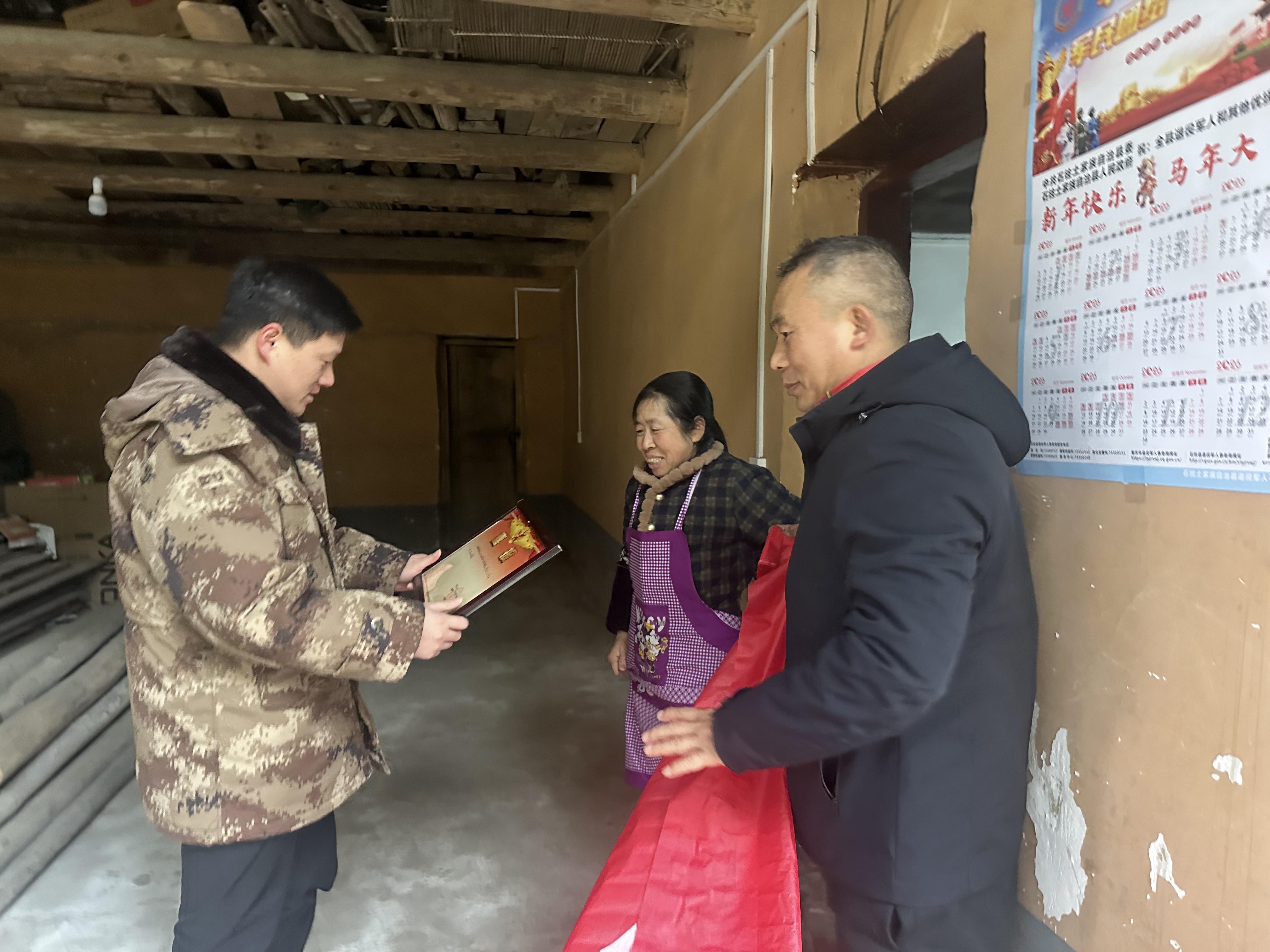 近日,沙子镇政府联合县退役军人事务局组成专项慰问组,带着党和政府的深切关怀,奔赴现役军人家中,为荣立三等功的现役军人亲属送上烫金喜报、慰问金及慰问品,将军营荣光与地方温情传递至“光荣之家”,让“一人立功、全家光荣”的尊崇氛围在乡镇大地浓情绽放。