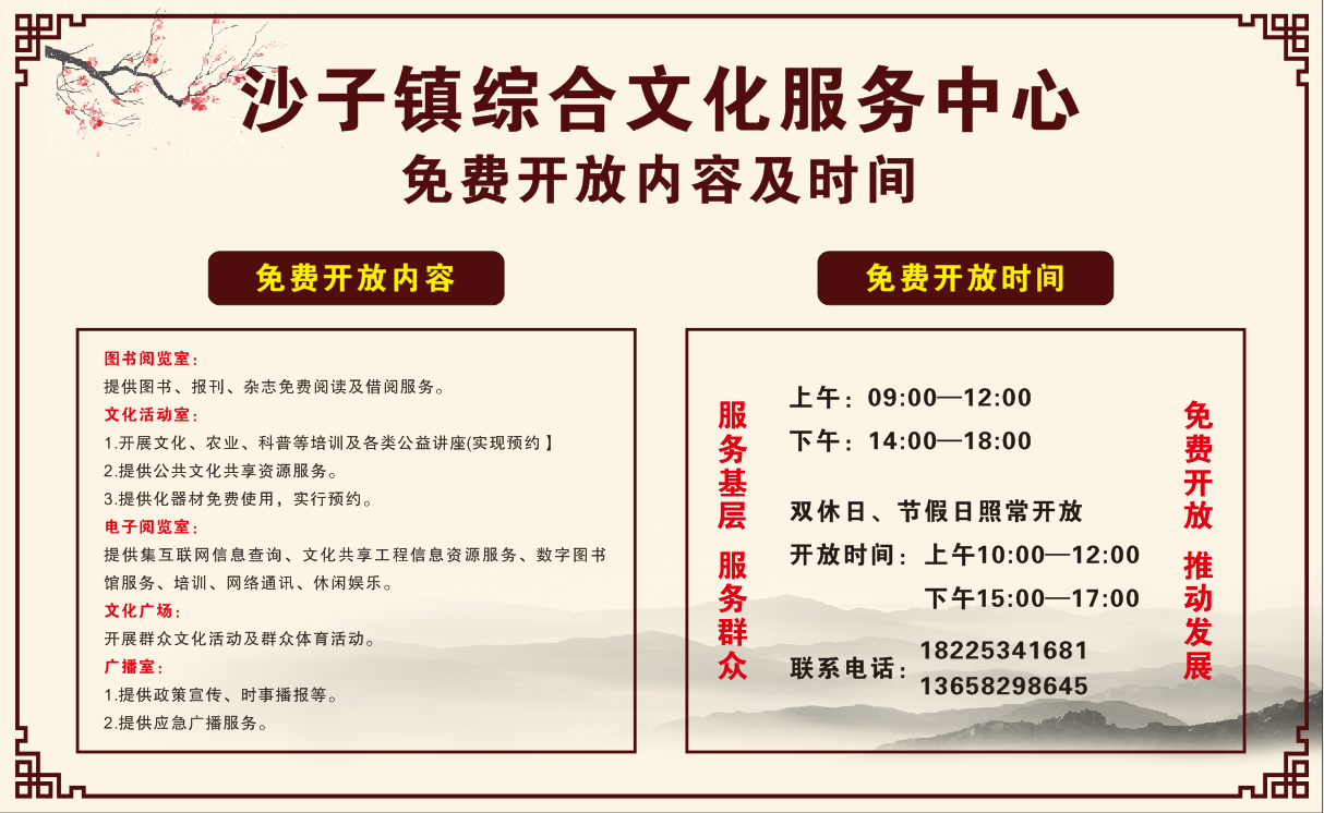 沙子镇综合文化服务中心免费开放内容及时间