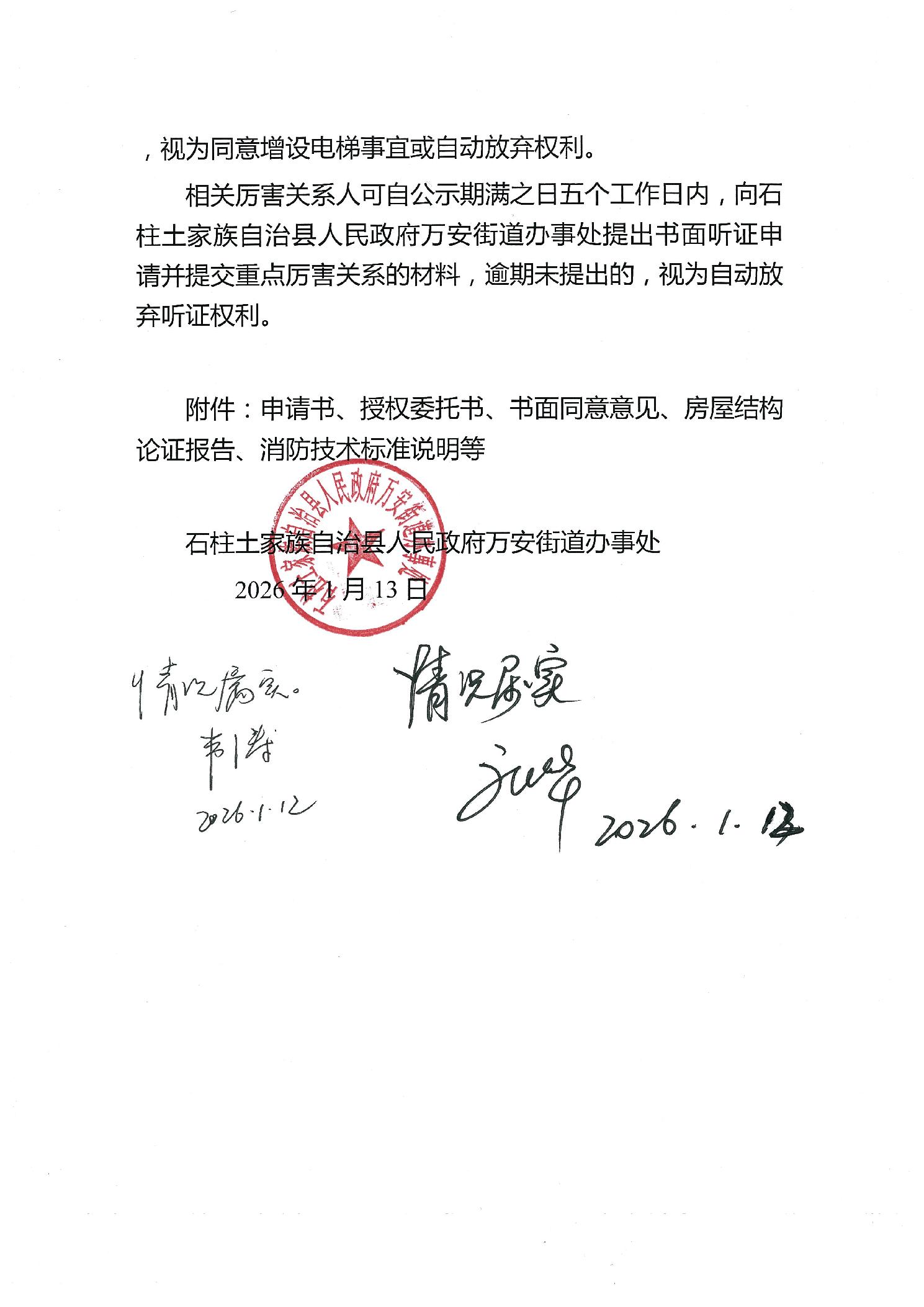 石柱土家族自治县人民政府万安街道办事处关于凤祥街3号增设电梯的公示