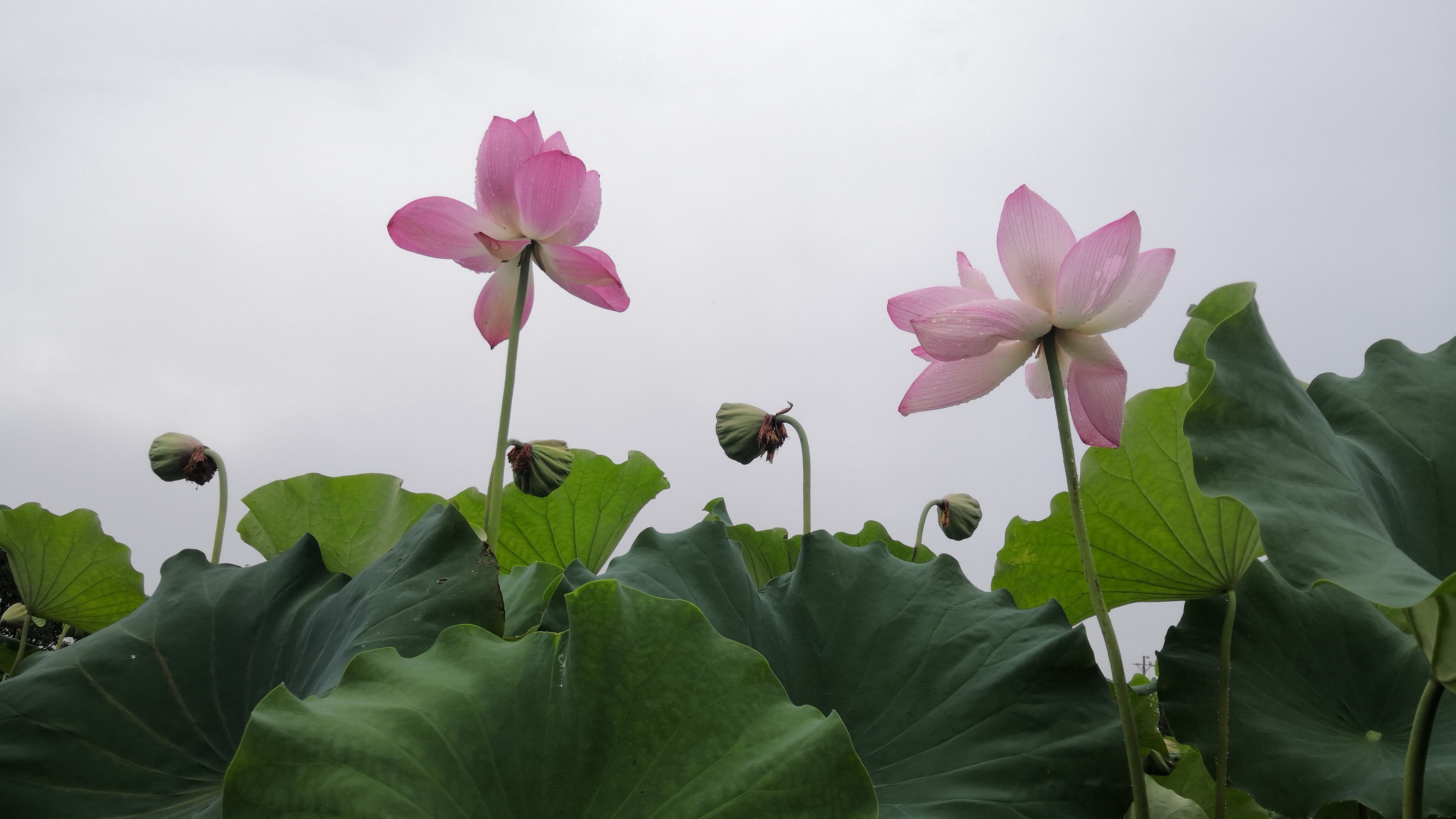 还有很多苞蕾未盛开,或者开放的程度不一,都是绿色的花柱将花苞高高举起,粉嘟嘟的,笑盈盈的,像水墨画的点缀,这很容易看到“小荷才露尖尖角,早有蜻蜓立上头”的诗意美景,甚或比盛开的花朵儿更妩媚。