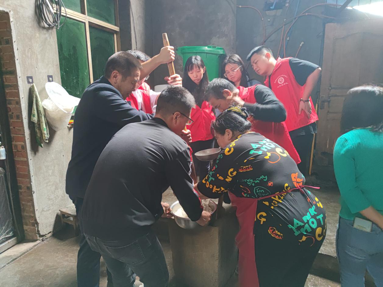 为持续推动新时代文明实践志愿服务深入推进民族团结进步,近日万朝镇新时代文明实践志愿服务队为加强少数民族群众血肉联系结合“我为群众办实事”实践活动开展“促进民族团结一家亲”宣传服务活动。活动在当地农户家中开展体验干部群众打糍粑活动,活动中先由有经验的群众示范年轻干部学习掌握技巧,虽然这是项体力活但掌握了巧劲也能省力不少,大家积极踊跃参与其中过不久又白又糯的糍粑出锅端上桌,通过本次活动进一步推动了民族团结进步,使民族团结意识更加深入民心。