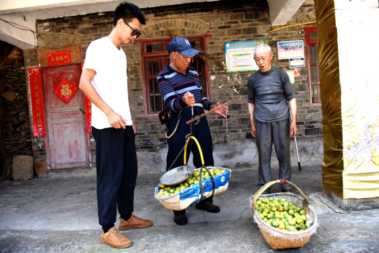 短短半小时,刘光明便摘了满满一竹篮,随后和刘成禄、谭元芳夫妇一同将数篮脆李过称后,交到了万富村干部手中,干部们急忙将其运输到202省道边的销售点。