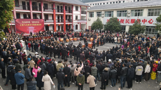 沙子镇土家飞马锣大型展演燃动新春烟火气