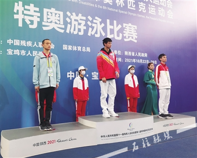 据介绍,王江桃是六塘乡平桥村人,因先天性智障,他被评为二级残疾,9岁时才被家人送到县特殊教育学校上学。学校教师从培智、培说、培学入手,在听力、语言康复训练方面慢慢“滴灌”,一年后他慢慢学会了说话,两年后可以与人正常交流。14岁时,他在县特殊教育学校教师指导和县残联帮助下开始练习游泳。